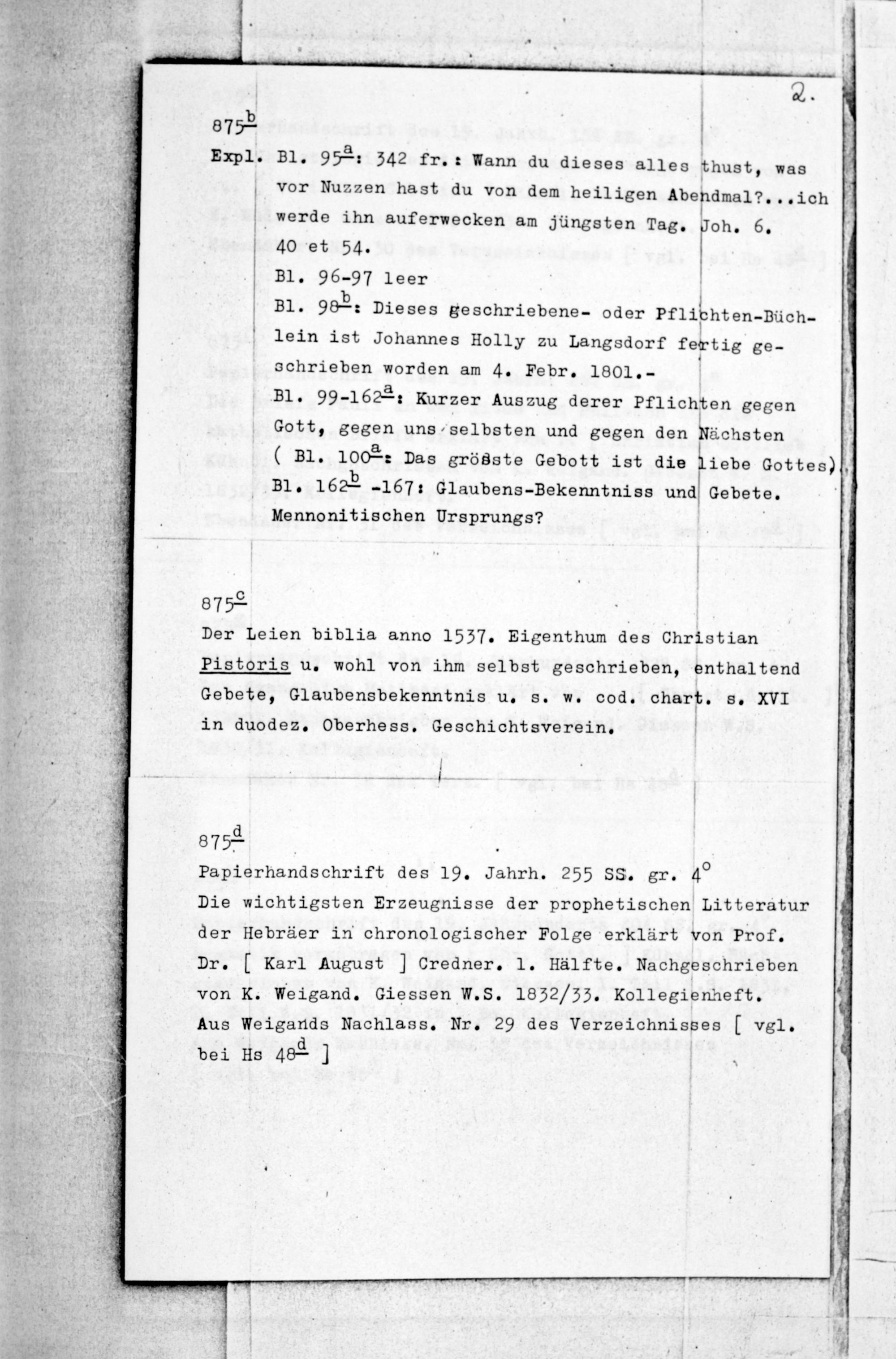 [Nachtrag] (1976) Katalog der Nachträge zum Gießener Handschriftenkatalog von Adrian (1840) 1840-1952 und der Anmerkungen zu den Handschriften 1840-1975 / [zusammengestellt von Johann Valentin Adrian]