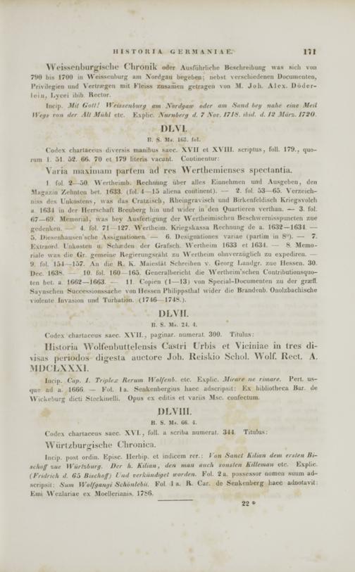 Incip. Cap. 1. Triplex Rerum Wo/fenb. etc. Kxplir. Mirare ne riinare. l'ert. us- rjuc ad a. 1666 — Fol. I a. Scnkcnbcrgius hacc adscripsit: Ex bibliotbeca Bar. de Wickeburg dicti Steckinelli. Opus cx editis et variis Msc. cunfcctum.