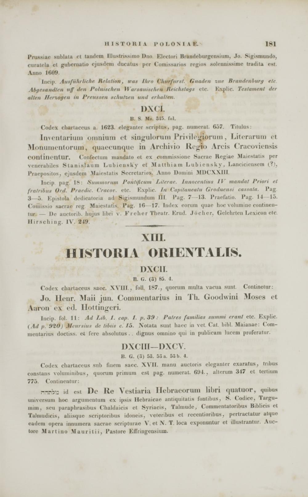 B. G. (3) 53. 53 a. 53 b. 4. Codex chartacrus snb fiuem sacc. XVII. manu aurtoris elcganlcr cxaratus, Inbus constans Yoluniinibus, <|iioruiu priajuua csl pag. numerat. 6U4.. allcrum 347 el tertium 775. Continentur: