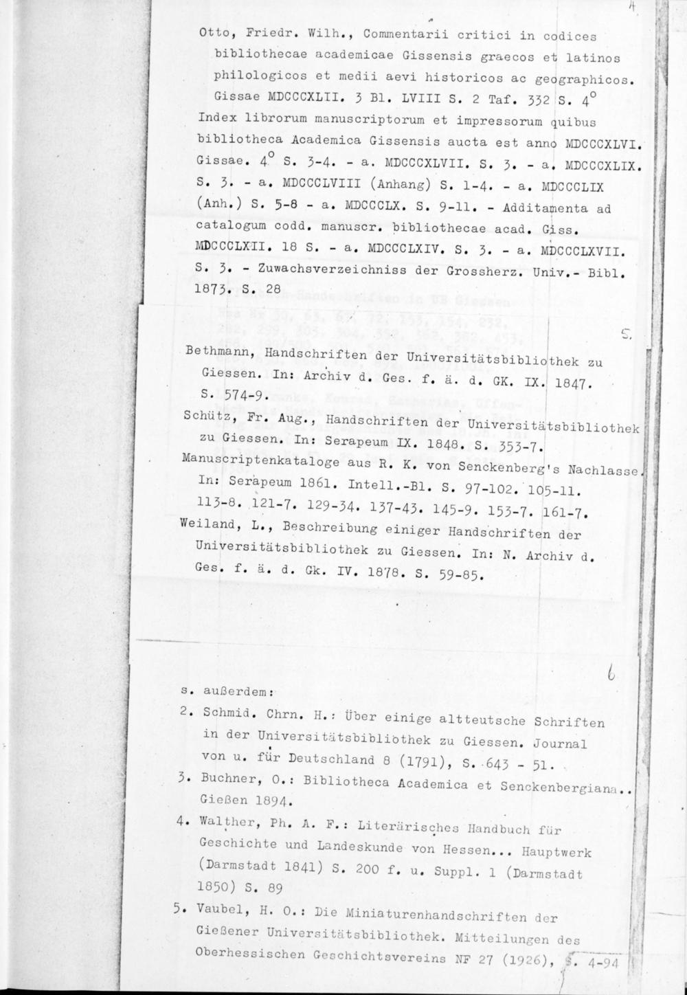 5. Vaubel, H. 0. : Die Miniaturenhandschriften der Gießener Universitätsbibliothek. Mitteilungen des Oberhessischen Gecchichtsvereins NF 27 (1926), ζ. 4-94