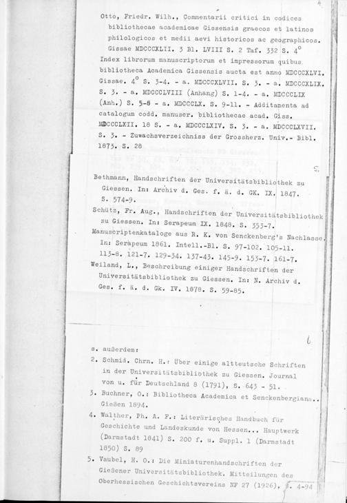 zu Glessen. In: Serapeum IX. 1848. S. 353-7. Manuscriptenkataloge aus R. K. von Senckenberg 1 s Nachlasse
