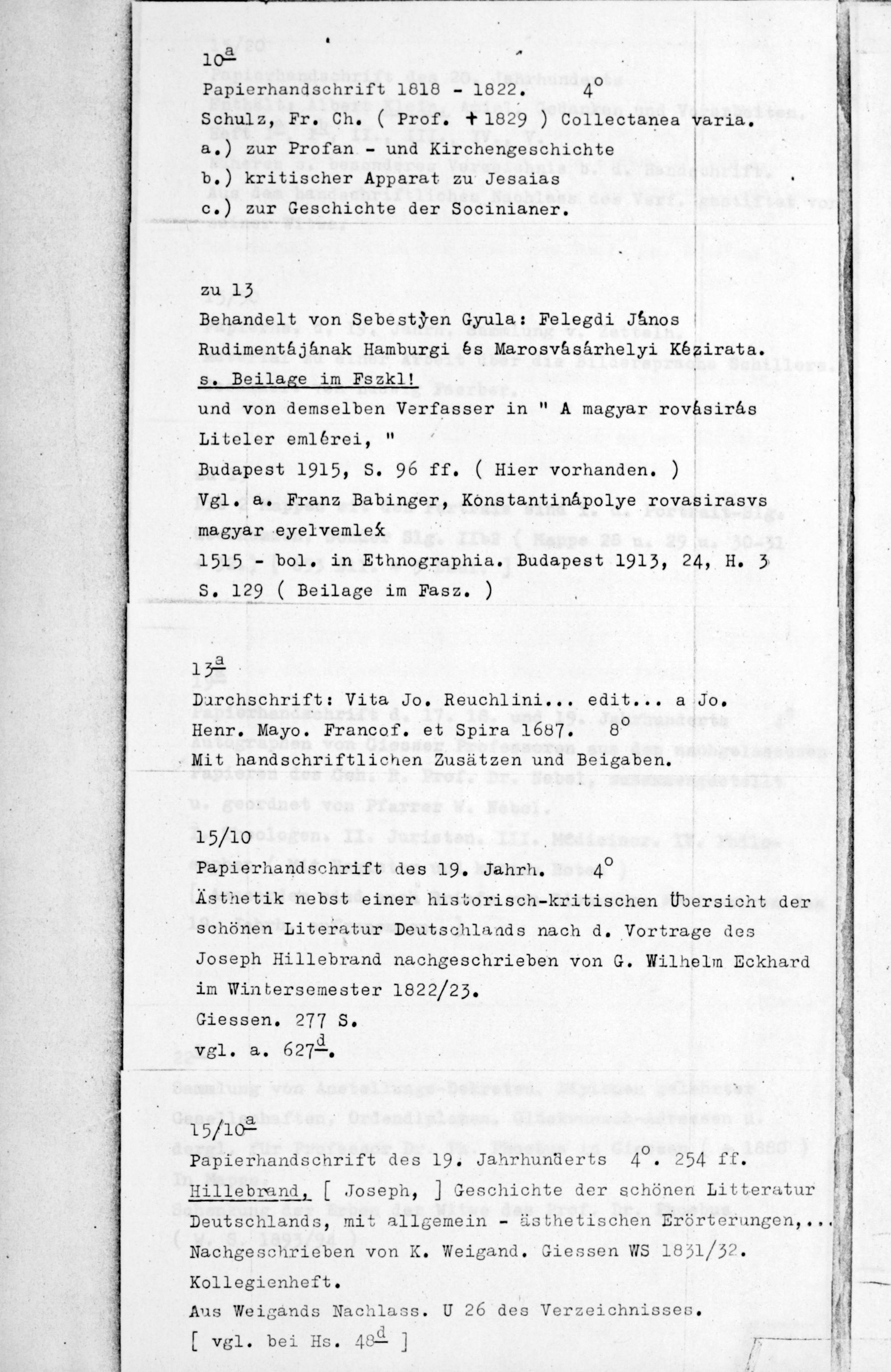 Papierhand s ehri ft des 19. Jahrhunaerts 4 . 254 ff. Hillebrand , [ Joseph, ] Geschichte der schönen Litteratur Deutschlands, mit allgemein - ästhetischen Erörterungen,. Nachgesehrieben von K. Weigand. Glessen WS 1831/3?· Kollegienheft .