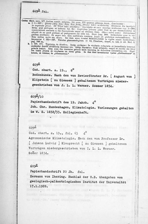 Hermann von Ihering. Nachlaß der U.B. übergeben vom geologisch-paläontologischen Institut der Universität I7 .I.I928.