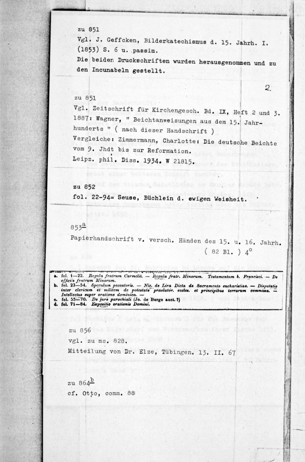 Vgl. Zeitschrift für Kirchengesch. Bd. IX, Heft 2 und 3, 1887: Wagner, " Beichtanweisungen aus dem 15· Jahrhunderts " ( nach dieser Handschrift )