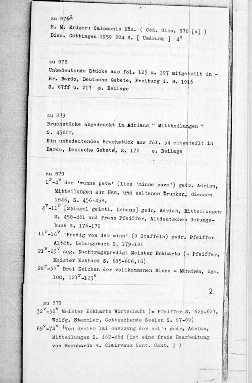 Ε. Μ. Krüger: Salomonis Hu3. ( Cod. Giss. 876j [a] ) Diss. Göttingen 1959 204 S. [ Umdruck J 4°
