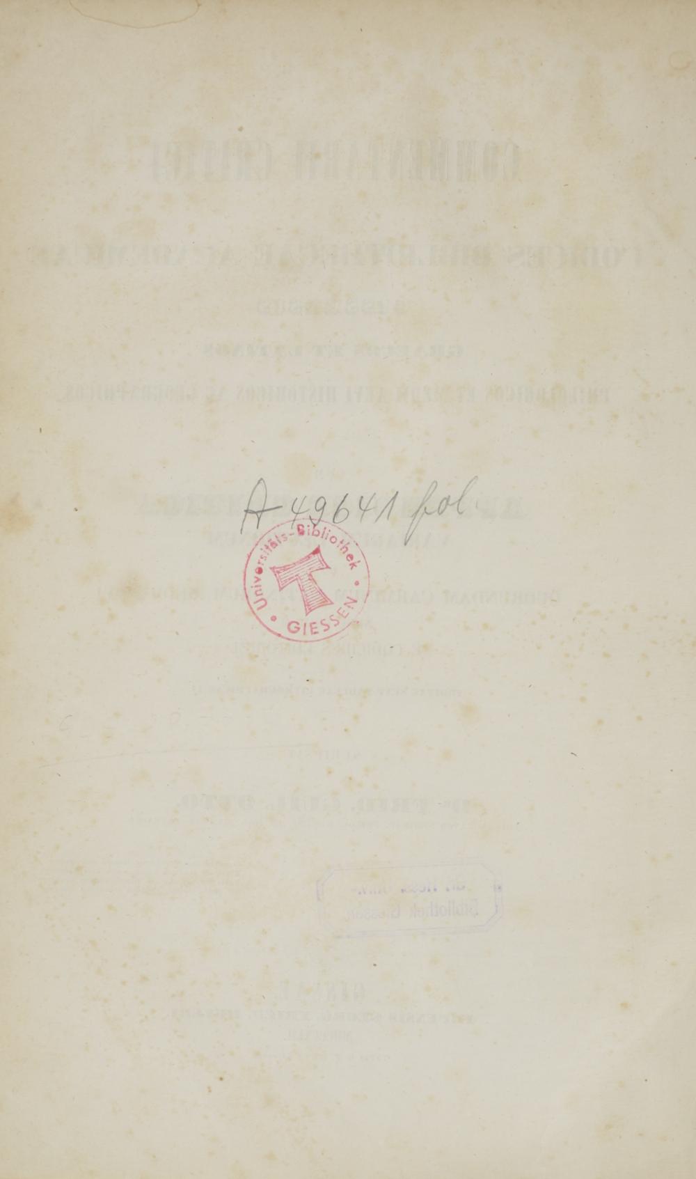 Commentarii critici in codices Bibliothecae academicae Gissensis Graecos et Latinos philologicos et medii aevi historicos ac geographicos : cum appendice critica variarum lectionum et quorundam carminum Latinorum medii aevi nunc primum e codicibus editorum / scripsit Frid. Guil. Otto