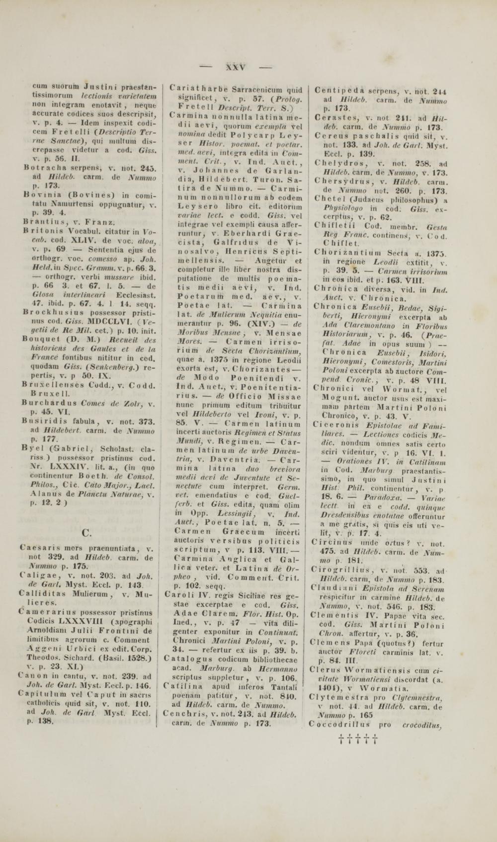cum suorum Justini praesUn- tissimorum lectionis rarietatem ii"ii inlegram enotavit , neque accurate codices suos descripsit, v. p. 4. — Idem inspexit codi- cem Fretclli ( Dcscriptio Ter- | ine Sanctae), qui iiiiiltum dis- crepassc videtur a cod. Giss. v. p. 56. II. Botracha serpens, v. not. 245. ad Hililcb. carm. de Xumm» p. 173.
