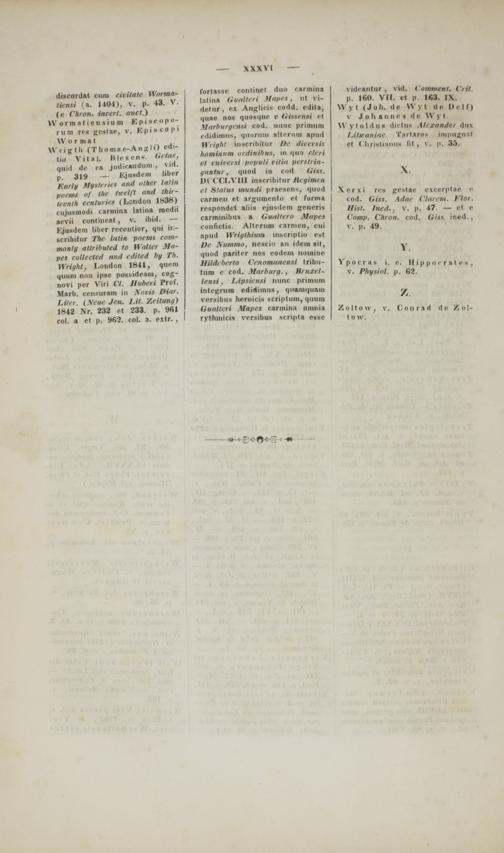fortasse conlinet duo cannina latin* (iimlteri Main s , ut vi- delur, ex Anglicis coild. edila, quae nos qnosqnc e (iissensi et Mnrlnirgensi cod. iionc primum edWMMBj qiinriiin altinini apinl Wtight iiiscribitnr l)e dirersis honiiiiiini nrilinihiis, iii i|iid titti et rtiirersi iniplili ritin perstrin- gitntnr , quod in cnd tiiss. DCCCLVIII inscribil ur Heyimen et Status mundi pracseiis, i|iiod carnien et argumeiilo et forma respondet aliis ejiisilem jjcneris earminibus a Gualtero Mapes confictis. Allerum carmen, cni apud Wriythium inscriplio est l)e yummo, nescio an idemsil, quod parilrr MM codi in iioinine Hildcherto Cenomanensl (ribn- tiim e cod. Mnrhurq. , Rruxrl- lensi, Lipsiensi nunc priiniim intfgruin edidiiiius, i|nami|iiain versibus lieroicis scriptiiin, qiiuiu Guatleri Maiies carmiiia omnia rythmich versibus srripla esse