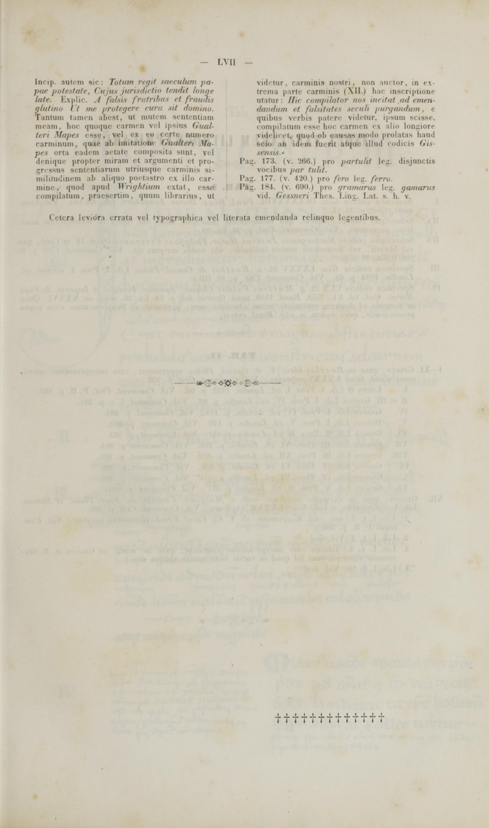 Inrip. autom sio : Totum rrgit sarculum jia- jtar jiu/esta/c, Cujus jtirisdirlin tcndit lunge late. Explic. A falsis fratrihtts et fraudts gliitinu l/ mc jiru/rgere rura sit domatu. Tantuni tamen abcst, ut maten sententiam meam, hoc quoque carmen vcl ipsius Gual- teri Mapes csse, vel ex eo cortc numero carminum, quae ab imitatione Gutiltcrt Ma- pes orta eadem actate composita sunt, vcl dcniquc propter miram ct argumenti ct pro- rrcsMM lententiarum utriusque carminis si- militudinem ab aliquo poetastro cx illo car- mine, quod apud Wrightium cxtat, csso compilatum, pracscrtiin . qnum librarius, ut