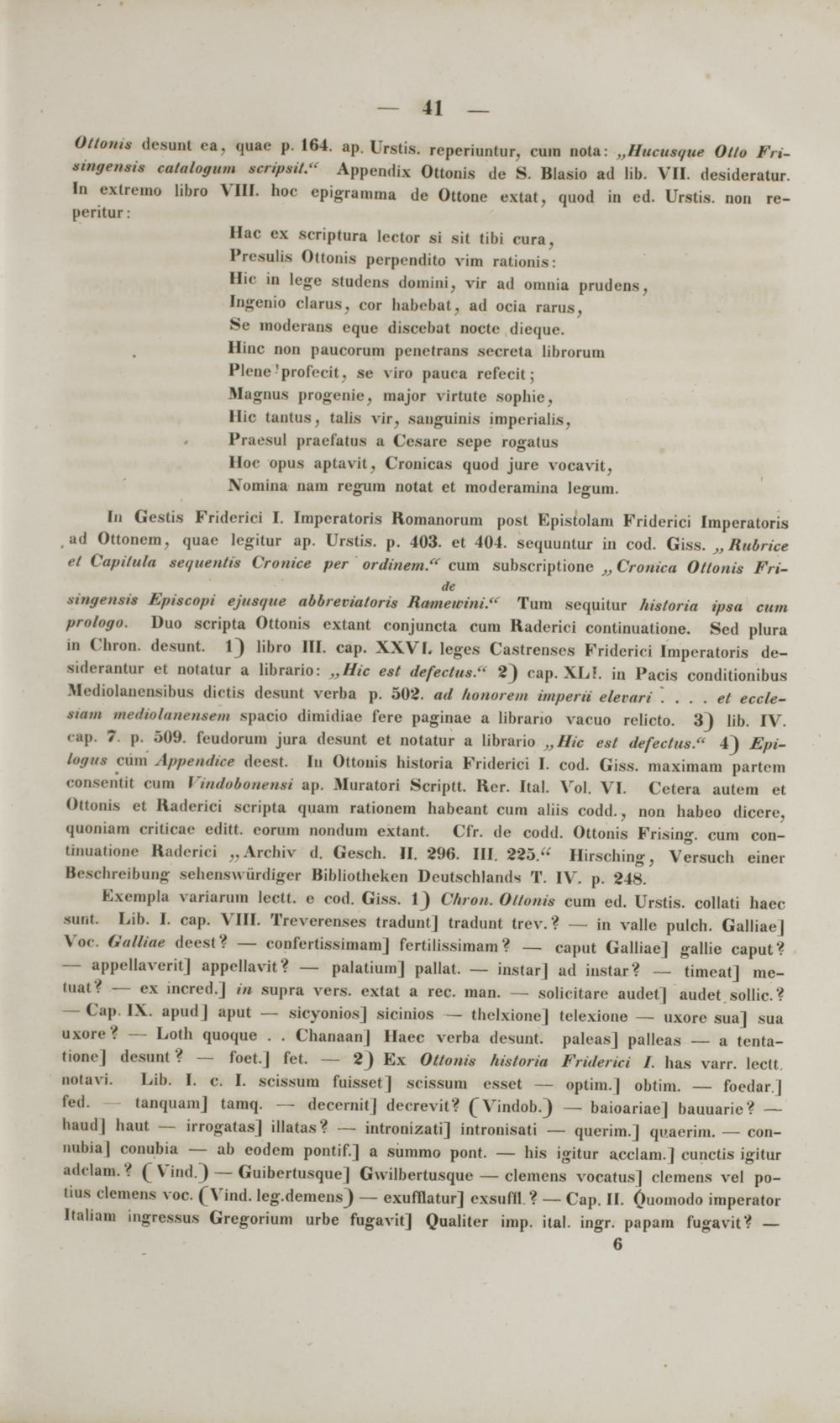 Oltoitts desunt ca. quae p. 164. ap. Urstis. rcpcriuntur, cuin nota: „Hucusque Otto Fri- stngeitsis catalogttm wcripnt." Appcndix Ottonis de S. Blasio ad lib. VII. desideratur. In extrcmo libro VIII. hoc epigramma de Ottone cxtat. quod in ed. Urstis. non re- peritur: