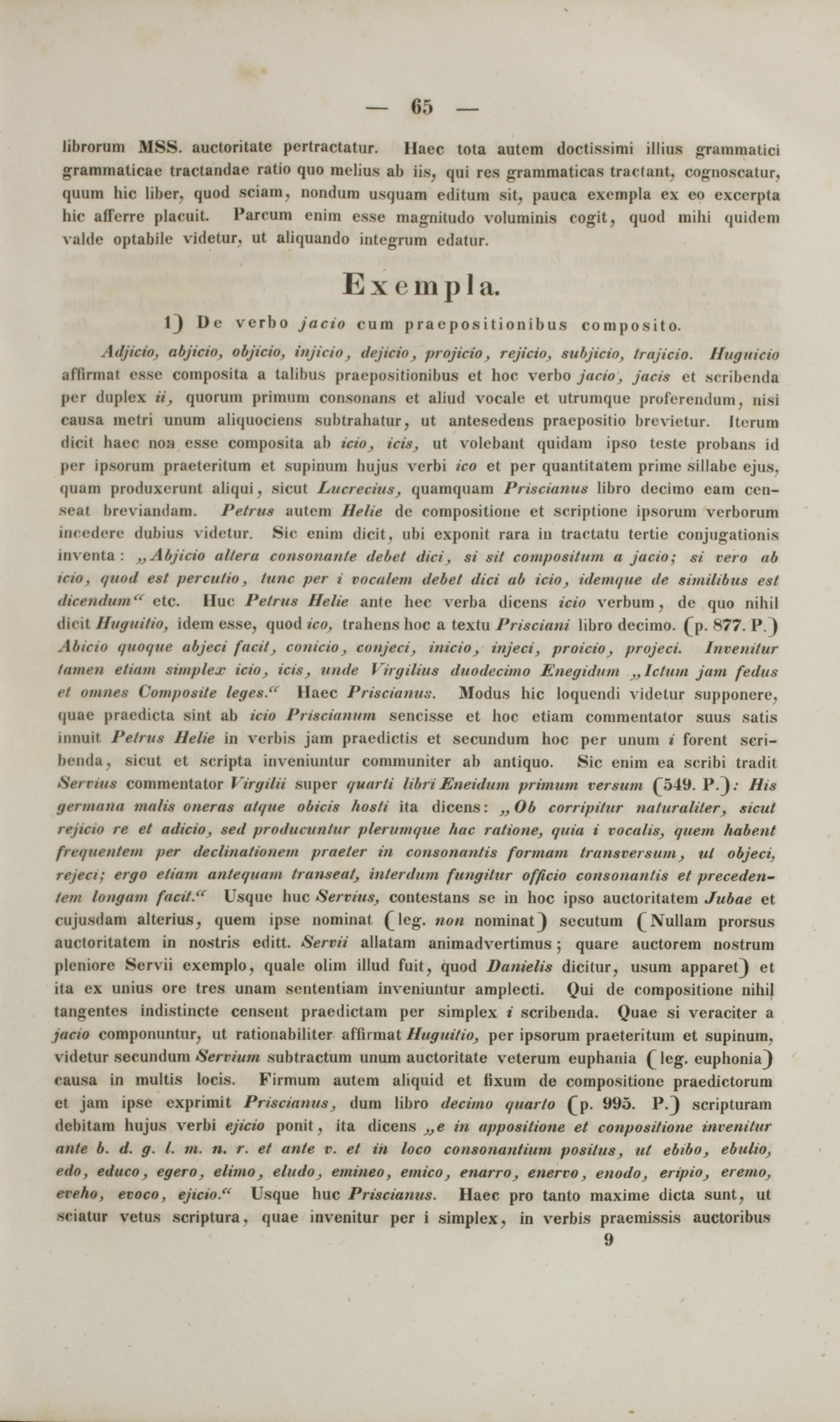 librorum MSS. auctoritate pertractatur. Haec tota autem doctissimi illius grammatici grammaticae tractaudae ratio quo melius ab iis, qui res grammaticas tractant. oognosoatur, quum hic liber. quod sciam. uondum usquam editum sit. pauca exenpll ei eo excerpta hic afferre placuit. Pareum enin esse magnitudo voluminis cogit, quod mihi quidem valdc optabilc vidctur, ut aliquando integrum edatur.