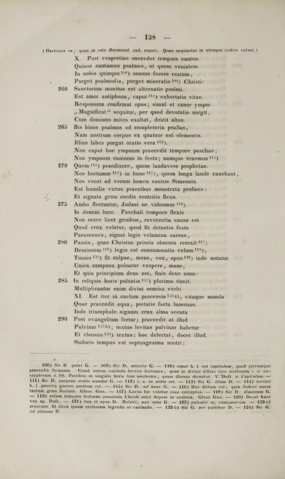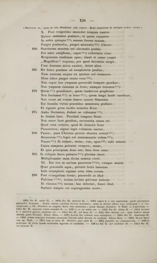 tantuin UOnu llectiint. Gloee. Gisa. — 117) l .nriis hic vidctur esse corruptu». — 118) Sic D. ilimixxiim G. — 119) rtlitm tempore lecturae passionis ( liristi solet deponi in ecclesia. Gloss. Giss. — 120) Deest haec vox ap Dufr. — 121) vox rt opus D. Dolovi; pnx npus G. — 122) piihntio sc. rainpana -iiin. — 123 n) proressio fit circa ipsaui ecclesiam legendo et cantando. — 123 li) Sic (J. prr pitlrinnr D. — 124) Sic G. est pltnisus D.