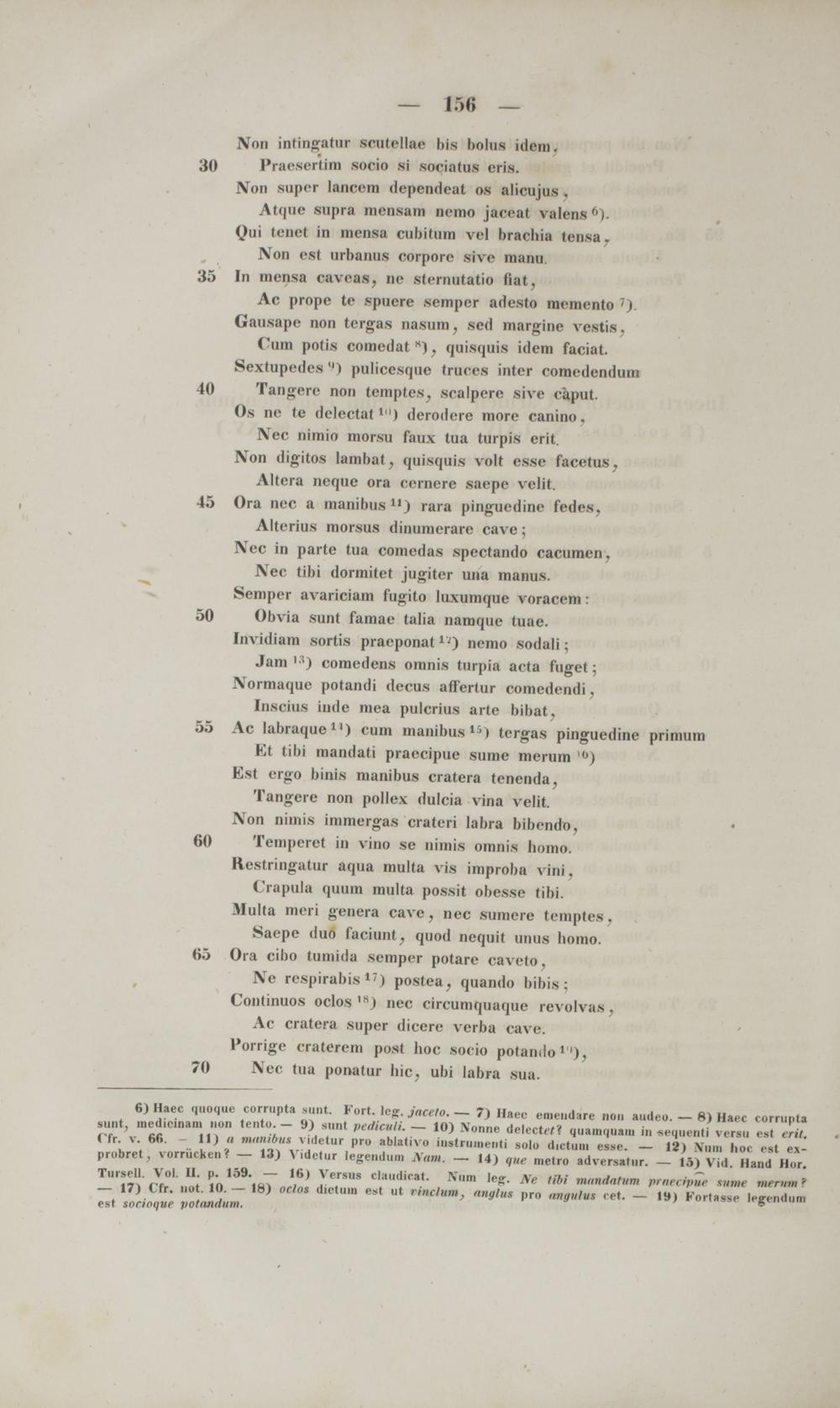 6) llaec fOOque cornipts simt. Fort. Icg. jaceto. — 7) Hacc emeudare non andco. — 8) Hacc corrwpta snnt inetlicinam non tento. — 9) siint peiliculi. — 10) Xonne delecter? quani<|uaiu in sequenti versu est erit. Cfr. v. 66. - 11) u mnnibus videtur pro ablativo instruiueiiti solo dictuni esse. — 12) Xuin hoc est ex- probret, vorriickeii? — 13) Yidetur legeiidum Xam. — 14) que nielro adversatur. — 15) Vid. Hand Hor. Tuisell. Vol. II. p. 159- — 16) Versus claudicat. Num le». A'e tibi mimilatum prnecipue sume merum?