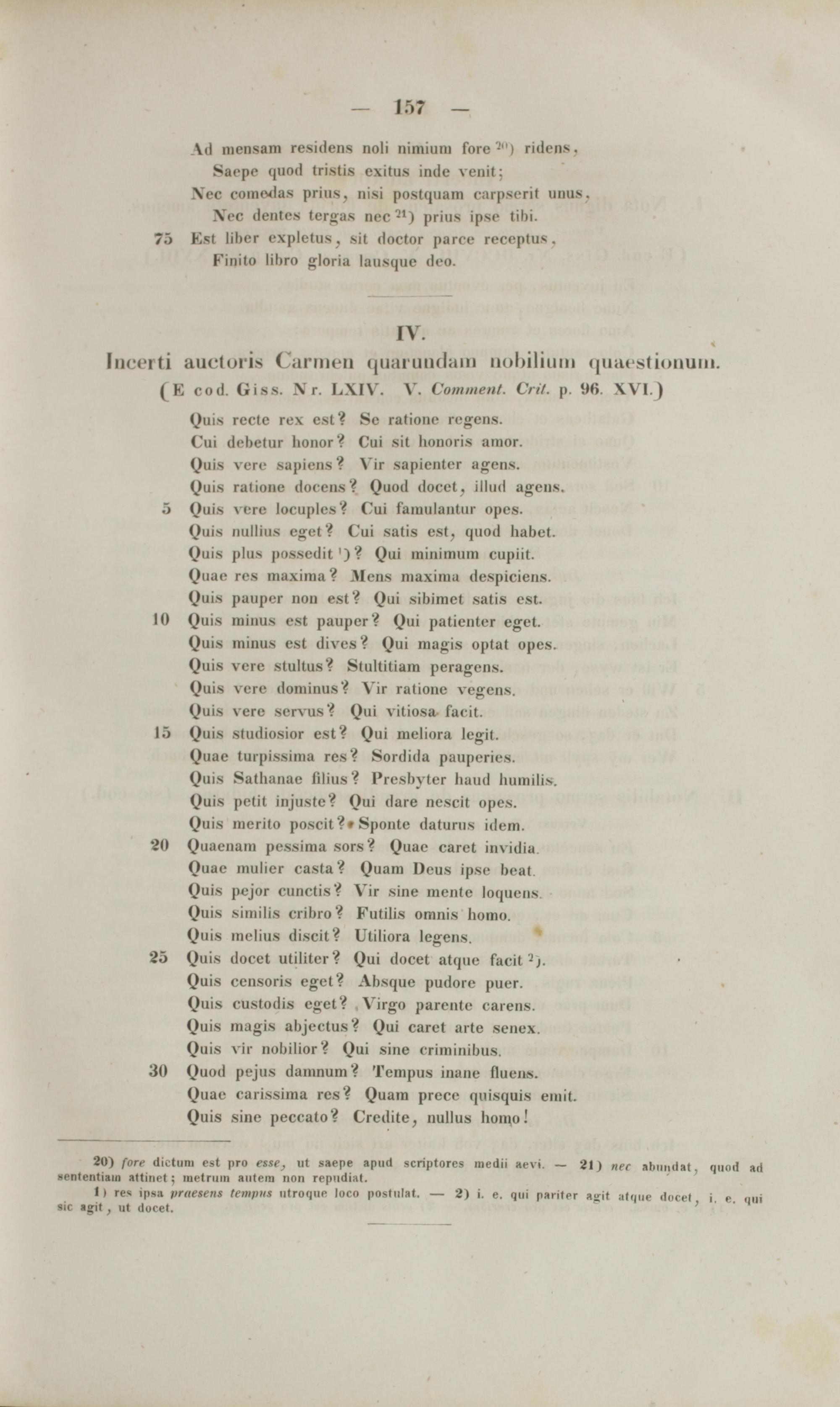 20) fore dictuni est pro esse, ut saepe apud scriptores medii aevi. — 21) nec abundat, quod ad Hpntentiain attinct ; metriiin autem non repudiat.