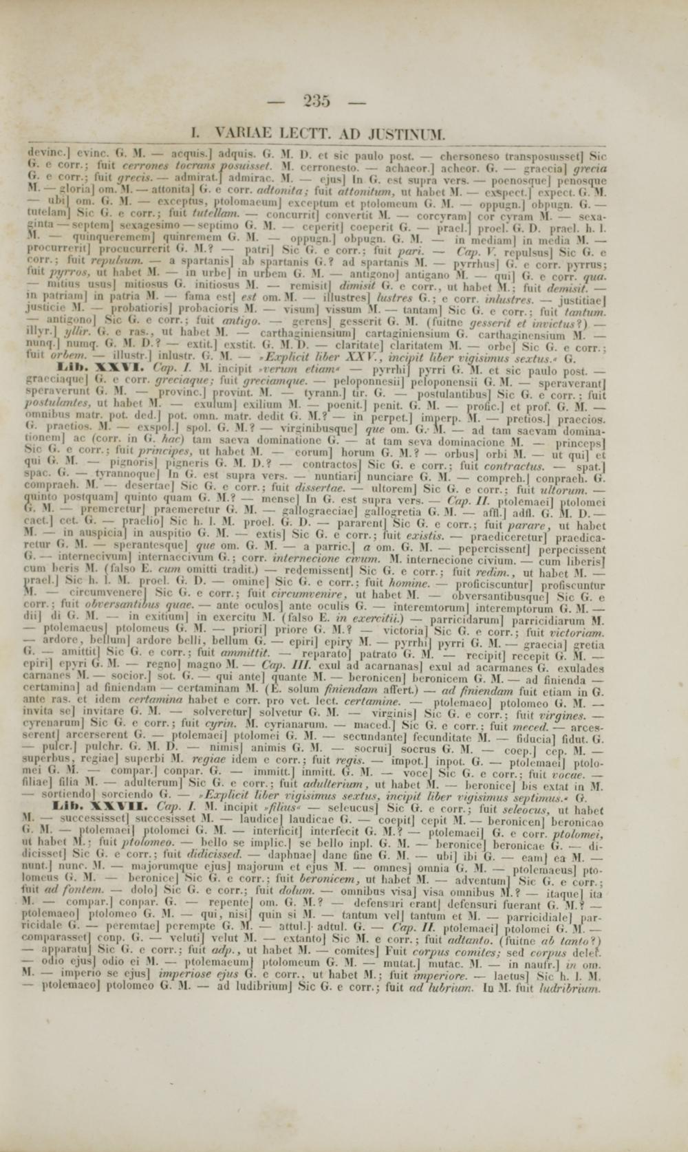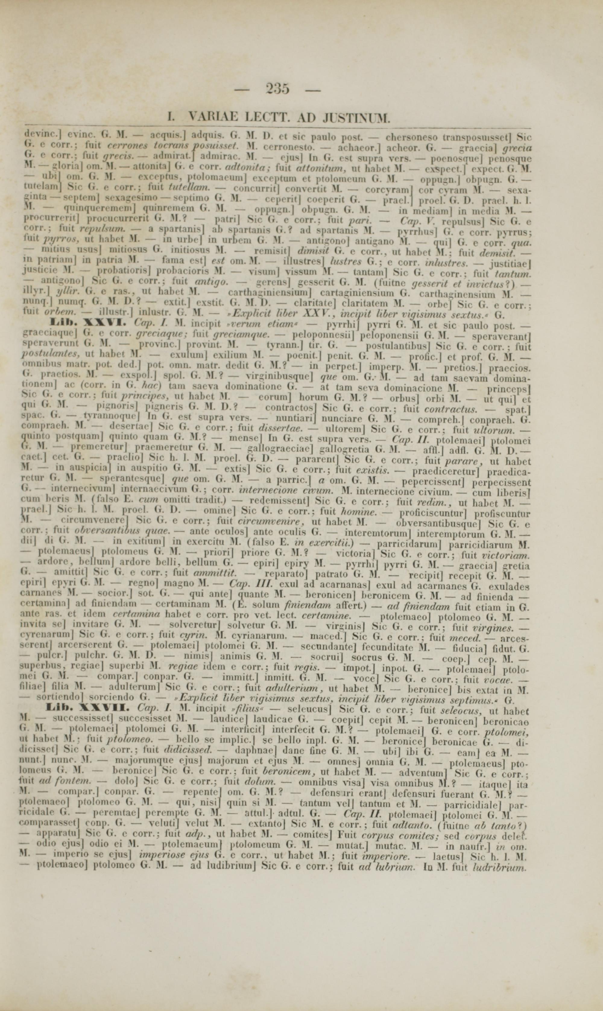 ici (i. M. — compar.] conpar. (i. — ininiilt.j inmitt. (i. 51. — vocej Sic G. e corr.; fuit vocue. — liae] lilia 51. — adultorum| Sic (i. e corr.; fuit atlitl/erium, ut babot M. — bcroniccj bis extat in 51. sortiondo| sorcicndo G. — fExplici/ liber vigisimus sex/tis, incipi/ libcr ritji.simus se /i /initis.- 0. liili. \\VII. Cnji. I. M. incipil filitis - seleucus] Sii e corr.; fnit sekocus, ul \w\^( . — successisset] succosisset 51. — landicel laudicae (i. — cocpit) cepit 51. — beronicen| beronicao 51. — ptolemaei] jitolomei G. 51. — interlicit] tnterfecit (i. 51.? — ptolemaeij G. e corr. p/olomei, habet 51.: liiit p/olomeo. — bello se implie.l se bcllo inpl. (i. 51. — bcronicej bcronicae G. ■— di- M< isset] Sic G. e corr.; fuit dit/icissed. — <laphnao| dane finc (i. 51. — nbij ibi G. — eaioj ea M. — iiiint.| mrar. M. — nujornmqne ejusj majorum < t ejus 51. — onincsj omnia (i. 51. — ptolemacus] pto- Haeas (i. 51. — beronicej Sic G. c corr.; fuit beronicem, ut habet 51. — adventuinj Si< (i. e Corr.; int ud fion/em. — dolo| Si<- (i. e corr.; fuit dolum. — omnibus visaj visa omnibus 51.? — itaque| ita I. — compar.] conpar. G. — repent <'J om. G. 51.? — dcfens iri orant) defcnsuri fuerant (i. 51.? — tolen\aeo| ptolomeo G. 51. — qui, nisij quin si 51. — tantum vel| tantum et 51. — parrioidiale] par- icidale (i. — pCremtae] pcrempte G. 51. — Sttnl.]' adtul. G. — Cap. II. ptolemaeij ]itolomei (i. 51. — Nnparasset] conp. (i. — vclutij vi lut 51. — extantoj Sic 51. c corr. ; fuit ad/an/o. (ftaime ttb ttinto'i) - ■pporatnj Sic G. c corr.; fuit adp., ut babct 51. — comitcsj Fuit t orpus cormtes; sed t orpus deler. odio ejus| odio ei 51. — ptolemaeuni) ptolomcum (i. 51. — niulat .J inutac. 51. — in naufr .J iri om. — impeno sc ejus| imprriose ejus G. c corr., ut habct 51.; fuit imperiorc. — laetusj Sic h. I. 51. ptoloinaco] ptolomco G. 51. — ad ludibriumj Sic G. c corr.; fuit ad /ubriurn. lu 51. fuit ludribrittm.