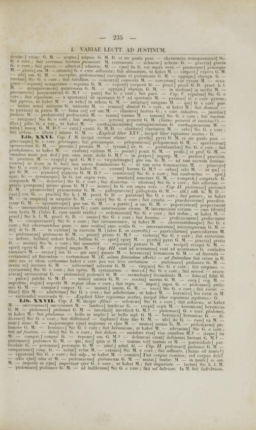 i ii>. UTIi Ciip. I M incipil venm ttkm* — pyrrbij pyrri G. M. ct sic panlo post. — graociaquo| (i. o corr. grrciaqite: fuil greritiniqitc. — ]ieloponnesii| peloponensii (i. M. — speravcrant| ^l" i ivorunt G. M. — provinc.| provint. M. — tyrann.] tir. G. — postulantibus] Sic G. e corr.: fuit postulmites, ut habot M. — cxulumj cxilium M. — pocnit.J pcnit. (i. M. — prouc.] ct prof. G. M. — oinnibiis matr. pot. dod.| pot. onin. inatr. dcdit (i. M.? — in pcrpct.] inincrp. 51. — pretios.] jiraecios. (i. praetio». 51. — exspol.J spol. (i. M.? — virginibusquc) t /ue oni. G. M. — ad tam sacvam domiua- tioncm| ac (corr. in (i. fitir) tam saova dominationc G. — at tam sova dominacionc M. — princepsj 8i( (■. c corr.: lb.it pririripes, ut habct M. — corumj horum (i. M.? — orbus| orbi M. — ut qui] ot qui (i. M. — pignoris] pigneris G. M. D.? — contractosj Sic G. c corr.; fuit contraclus. — spat.| spai (■. — t\r .iiinoqiK | In (i. ost supra vors. — nuntiari] nunciaro G. M. — comprch.| conpraob. (i. compraoh. M. — doscrtae| Sic G. e corr.; fuit di.s.srrtae. — ultoremj Sic G. e corr.: fuit ultorum. — quinio postqnamj qninto qnam (>. M.f — mensol In G. est supra vcrs. — Cap. II. ptolemaei] ptolomci G. M. — premeretnrj praemeretnr G. M. — raAogtaeciae] gallogretia G. M. — affl.J adfl. (;. M. D.— caet] oot. (i. — nraclio) Sic h. I. M. procl. G. D. — pararentl Sic G. e corr.; fuit parare, ut habct M. — in auspicia) in auspitio G. M. — extisj Sic G. e corr.; fuit exi.stis. — pracdiccrctur| pracdica- rotur (■. M. — sporantcsque| que om. (i. M. — a parric.| a om. G. M. — pepcrcissentj perpecissent (i. - - intcrnoi■ iviim| intcrnaccivuin (i.; corr. internecionc civum. M. intcrnecione civium. — cum libcris| cum bet li H. (lalso E. cum omitti tradit.) — redcmissentj Sic G. c corr.; fuit redim., ut habct 51. — iraol.J Sic h. I. M. prool. (i. D. — ominej Sic (i. c corr.: fuit liomine. — proficiscuntur| profisi untiir I. — circumvcncrej Sic G. c corr.; fuit cirrumvenire, ut habot M. — onvcrsantibusquc] Sic G. e orr.: fuit tibversan/i /iit .s quae. — antc oculos] ante oculis (i. — interemtonim| intcremptorum G. 51.— dii| di (i. 51. -- in exitium| in exercitu 51. (falso E. in ejcercitii.) — parriridarum| parricidiarnm 51.