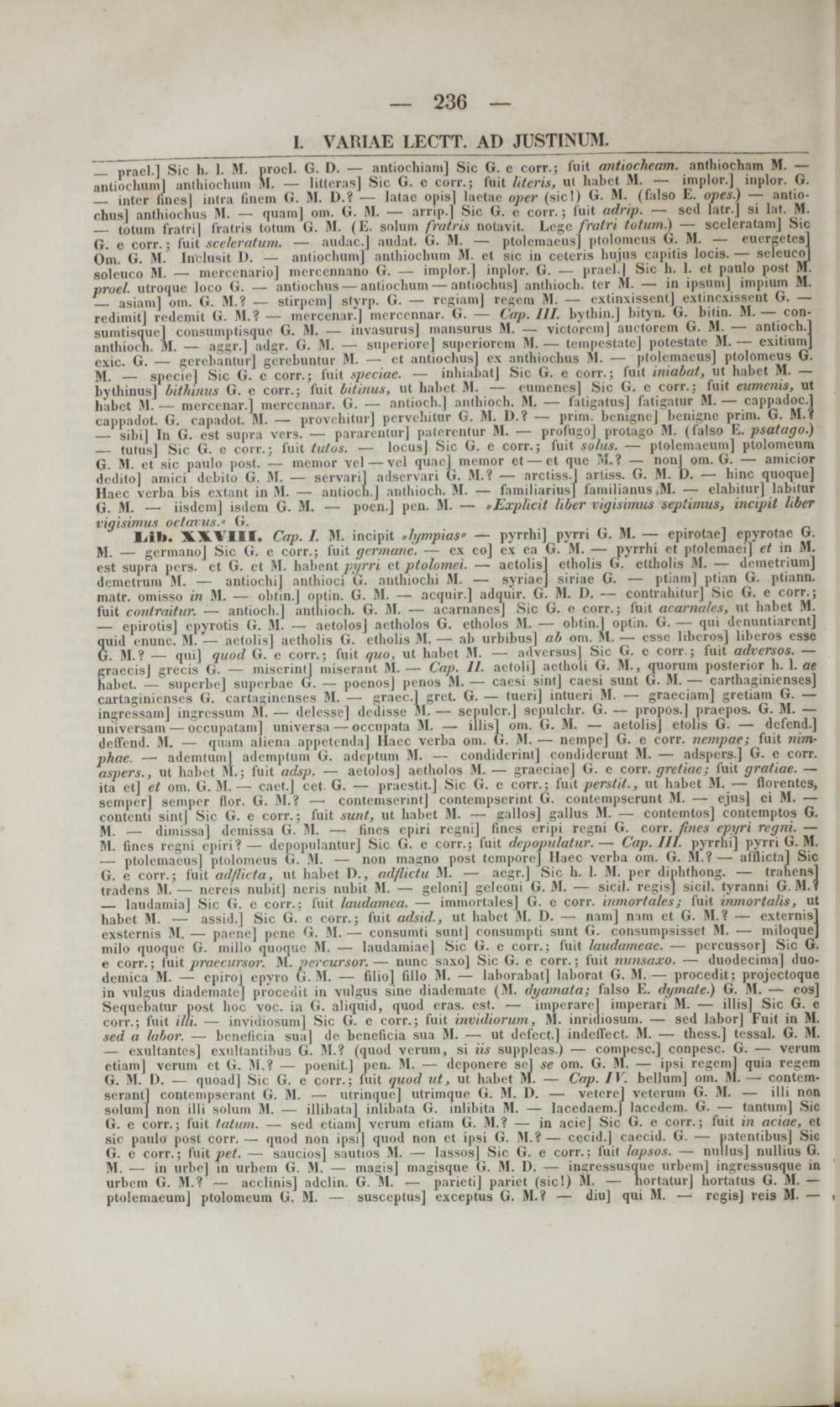 — totum fratri] fratris totum (i. M. (E. solum fratris notavit. Lcgc fratri iv/mn.) — sceleratam] Sic G. c corr.; fuit scclcratum. — audac.] audat. <■'. M. — ptoleroaeusj ptolomeua G. M. — euergetesl Om. G. M. Int/lusit D. — antiochum] anthiochum M. el sic in ceteris hujus capitia locis. — seleucoj soleuco M. — • mercenario] mercennano G. —• implor.J inplor. G. ■— prael.J Sic h. I. et paulo post M. proeL utroquc loco G. — antiochus — antiochum — antiochusj anthioch. ter M. — in ipsum] impium M.