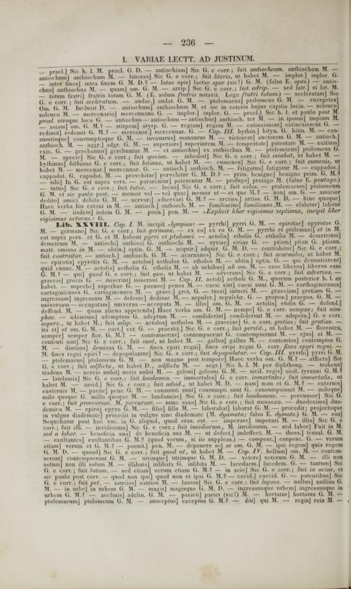 — exultantes] exultantibus G. M.? (quod verum, si iis supplcas.) — conipesc.J conpesc. G. — verum ctiamj verum ct (■'. M.? — poenit.J pcn. M. — deponere sej se om. G. M. — ipsi regeml quia regen G. M. D. — quoad| Sic G. e corr.; fuit quoil ut, ut habet M. — Cap. /('. bcllumj om. M. — contem- serantj contempserant G. M. — utrinque] utrimque G. M. D. — vctcrcj vctcium G. M. — illi non solunij non illi solum M. — illihatal inlibata G. inlibita M. — lacedaem.J lacedem. G. — tantumj Sic G. e corr.; fuit tatum. — scd ctiamj vcruni etiam G. M.? — in acicj Sic G. e corr.; fuit in aciae, et sic paulo post corr. — quod non ipsij quod non et ipsi G. M.? — cecid.J caecid. G. — patentibus] Sic G. e corr.; liiil pet. —■ sauciosj sautios M. — lassosj Sic G. e corr.: liiil ln/isos. — nullusj nullius G. M. — in urbej in uibcm G. M. — magisj magisque G. M. I). — ingressusque urbcmj ingressusque in urbem G. M.? — acclinis] adclin. G. M. — parieti] parict (sic!) M. — hortaturj hortatus G. M. — ptolemacumj ptolomcum G. M. — susceptus] exceptus G. M.? — diuj qui M. — regisj reis M. — i