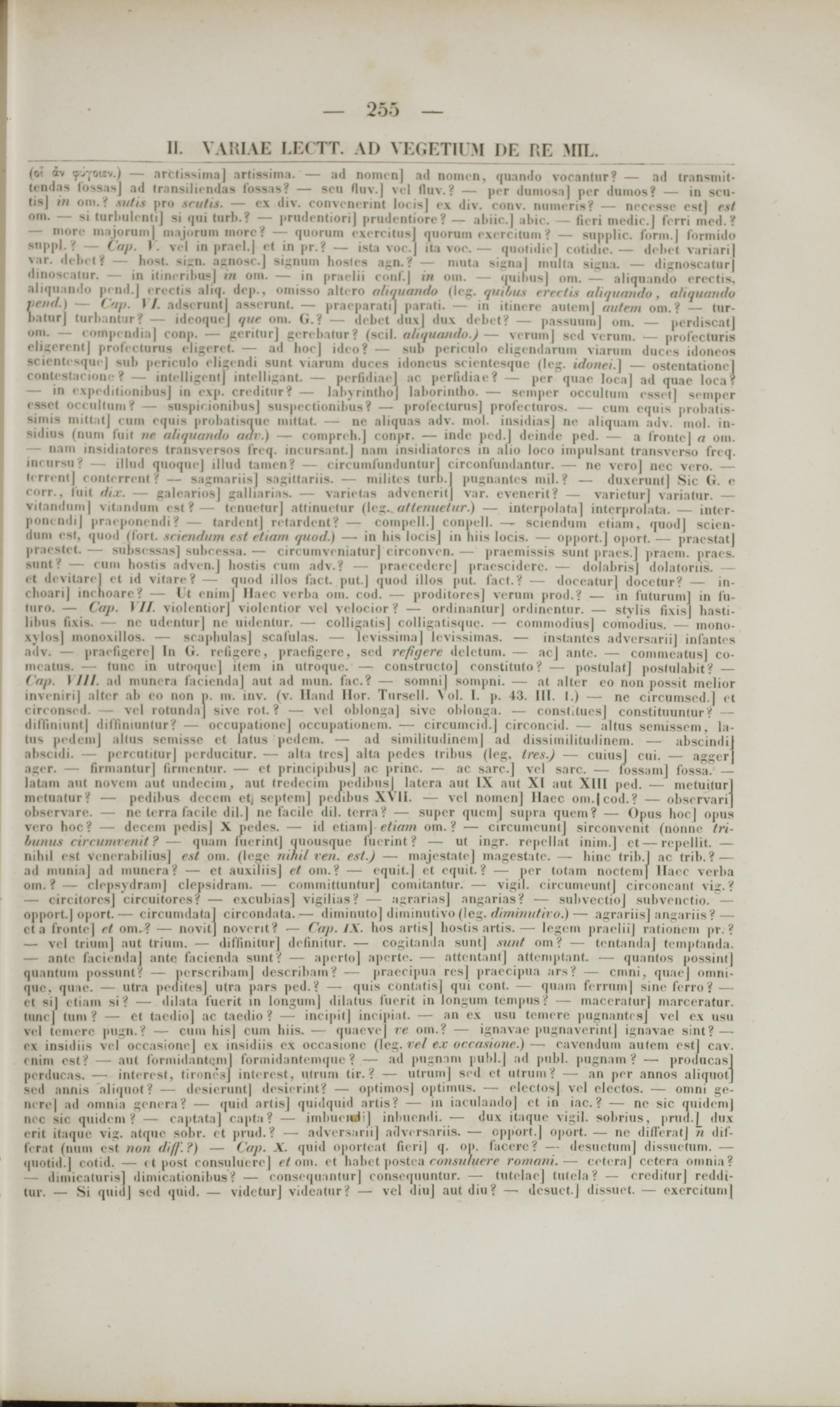 — nion- naipfwnl ■ mMIMN ? — i |iioruni oxorritusj f|iiorum cxcrciluiii ? — supplic. form .J rormido suppl. | — Cn/t. I. vcl in pracl.| ct in pr.? — ista vor.j ita voc.— qiioliilic) cotidic.— dclict variari| var. dcln I ? — host. «i«n. asnosr.] si«nuiii liosics a «n.? — nmla signaj multa si«na. — disnosralurj dinosi .iiiir. — in itinrnbu?] in om. — in praclii conf .J m om. — i |uil >usj om. — aliquando crcctis. alii |ii,iiic!ci pend .j crcctis aliq. dcp.. oinisso altcro tdiqiiando (lcg. quibus rrrrlis altquando, aliqiiimilu iirml.) — C'1 /i. II. adsi runlj asscrunl. — pracparatij parati. — in ilincrc aiilcni| niitrtn om. ? — tur- VmMfj torhantur? — idcoquc| qur om. (i.? — dcbct diixj du.x ilolnt? — passuuin| om. — pcrdiscatj om. — compcndiaj conp. — gcriturj gorchatur? (scil. aliquatido.) — vcruin] scd vi ruiu. - profccturis eligereiitj profccturus eligerct. — ad lioc] idco? — sub pcriculo cligc iiilariim viariim duccs nloncos scicnlcsquc| sub pcriculo eligendi sunt viarum duccs idoncus scicnlcsquc (log. idortri.] — ostcntationcl MMteatacionc ? — intclligcnlj intclligant. — pcrfnliacl ac perlidiac? — pcr quac loca| ad quac looa?