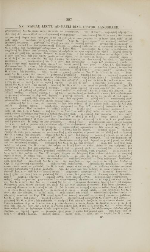 — irruitj inruit. — interfecit] Sic G. e corr.; fuit iittcrficit. — acj Dm. in tc.vtu G., scd est supra vcrs. a rec. m. et. — cacd.J ccd. — reper.J repper. — de iisj dc his? — accidcrantl accesscrant. — sta- tuuntj Sic G. e corr.; fuit statuit. — nunciisj Sic G. a ni. 1.; corr. nunt. — pracda| preda. — Cap. I I. in italiamj ad ital.? — assiimpt.] adstiinpt. — ciim oiiini supcll.| tcl omni siiprll.? fuit practcrea su- perlect. — ad gallias] ad galliam? — vcnircj redire? — deberentl Sic G. c corr.; fuit deberet. — in- tcjligi] intclleei. — aestim .J existim.? — hi) hii. — perebrcdiim) perbrrdum (i. e corr.; fuit pri brt t/ttrtum.