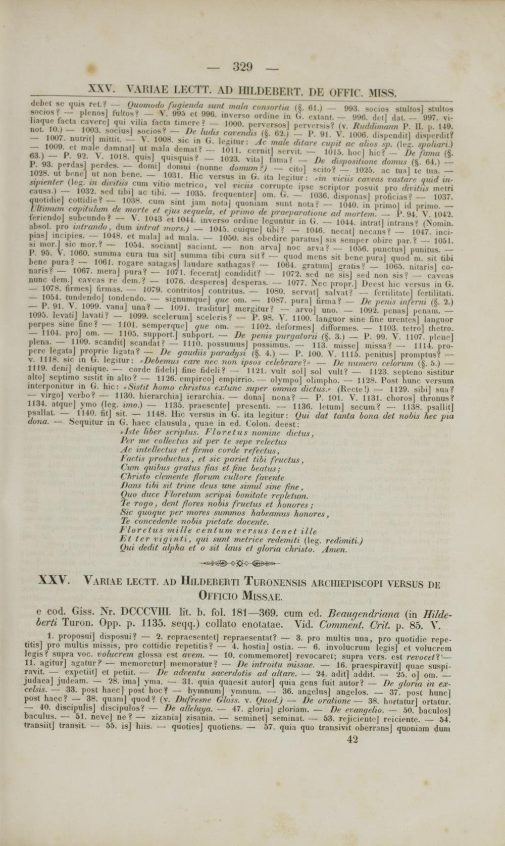 XXV. Variae lectt. ad Hildererti Turonensis HIEPISC0PI versus de