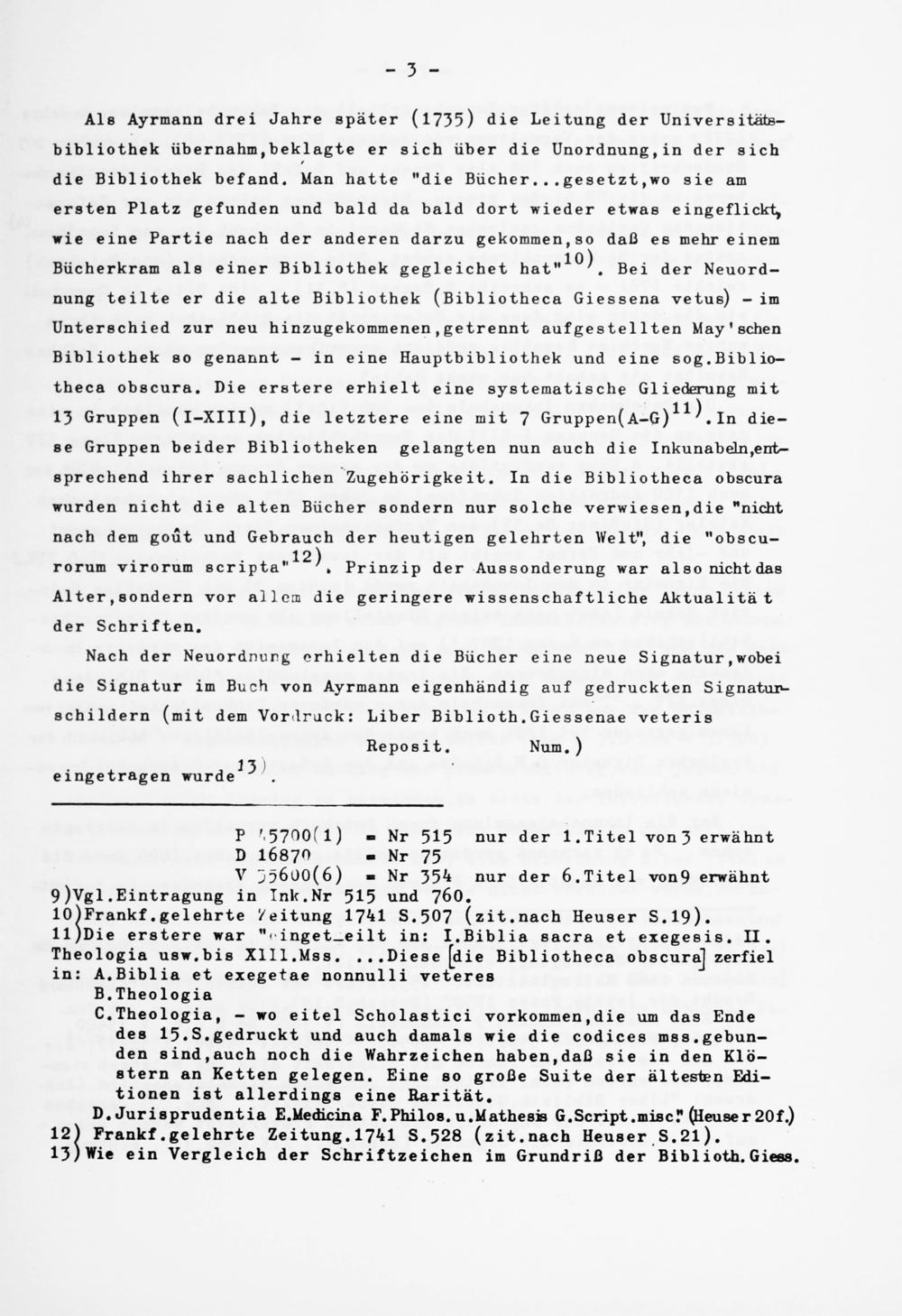 11) Die erstere war "1 inget_eilt in: I.Biblia sacra et exegesis. LT. Theologia usw.bis Xlll.Mss. ...Diese [die Bibliotheca obscuraj zerfiel in: A.Biblia et exegetae nonnulli veteres