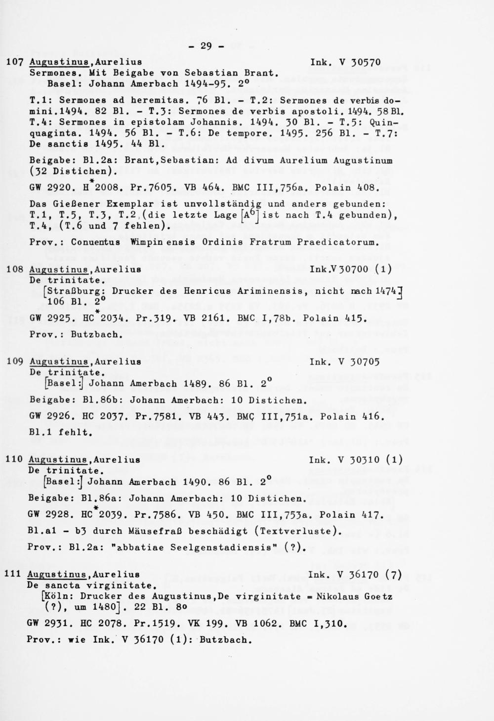 110 Augustinus .Aurelius Ink. V 3O3IO (l) De trinitate.