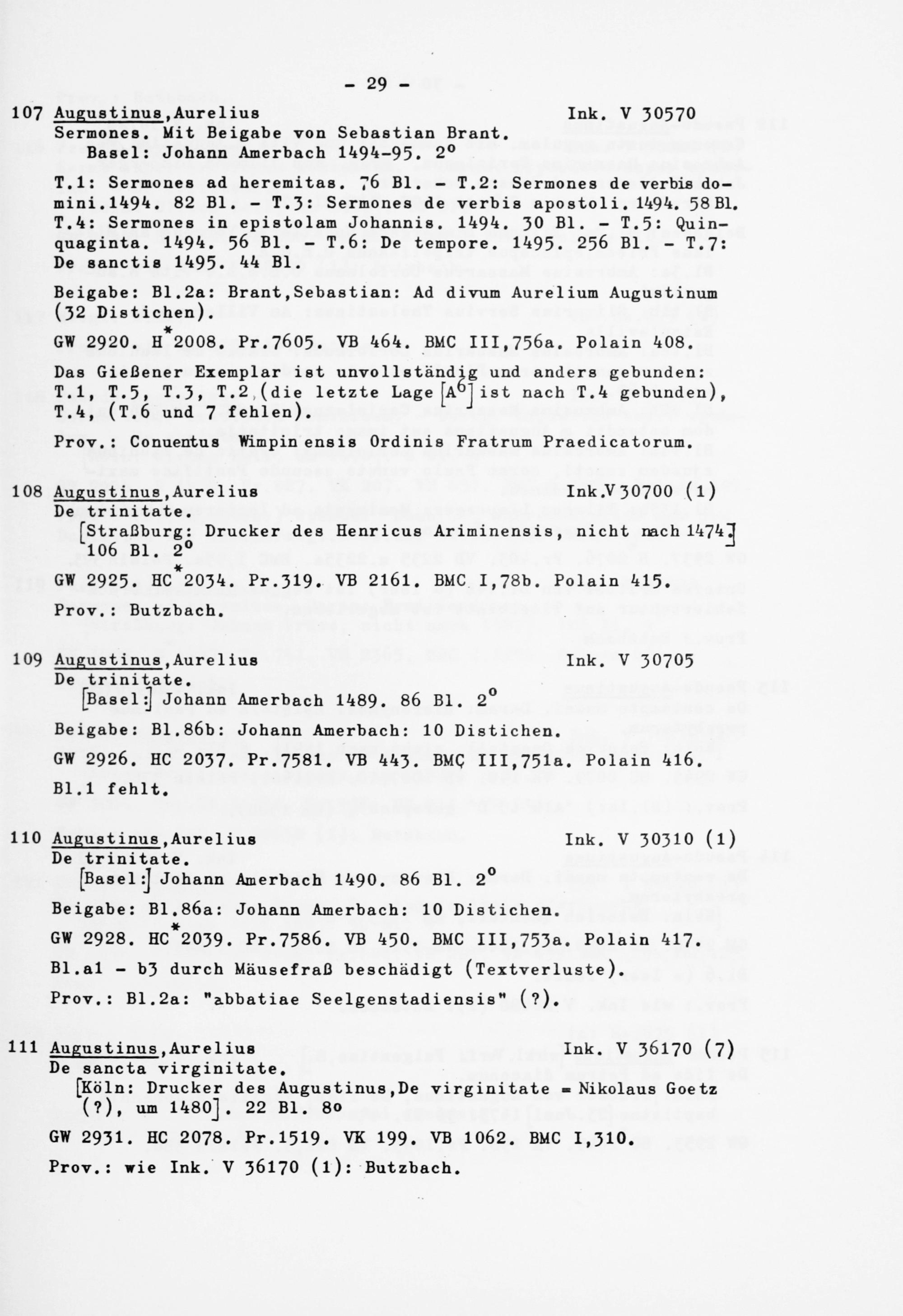 107 Augustinus .Aureliua Ink. V 30570 Sermones. Mit Beigabe von Sebastian Brant.
