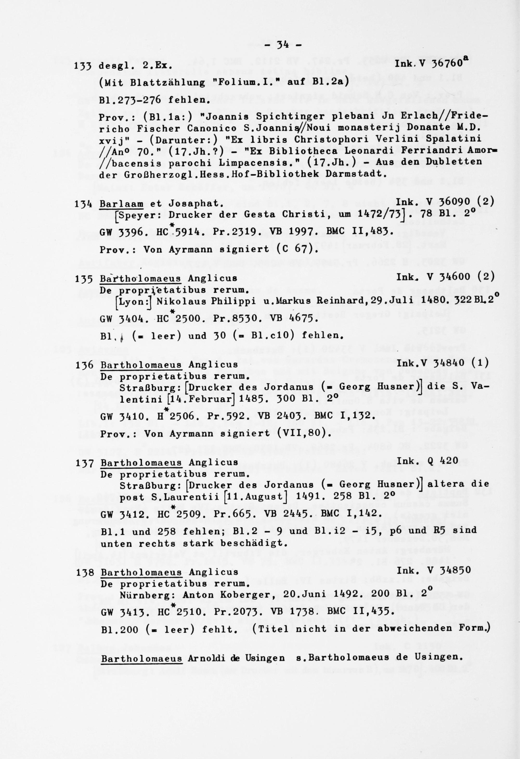 136 Bartholomaeus Anglicus Ink.V 34840 (l) De proprietatibus rerum.