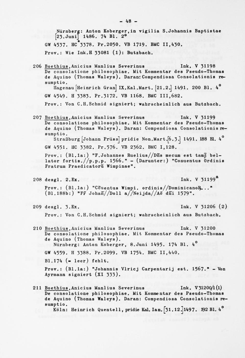 211 Boethius .Anicius Manlius Severinus Ink. V31200 /l(l) De consolatione philosophiae. Mit Kommentar des Pseudo-Thomas de Aquino (Thomas Waleys). Daran: Compendiosa Consolationis re- sumptio.