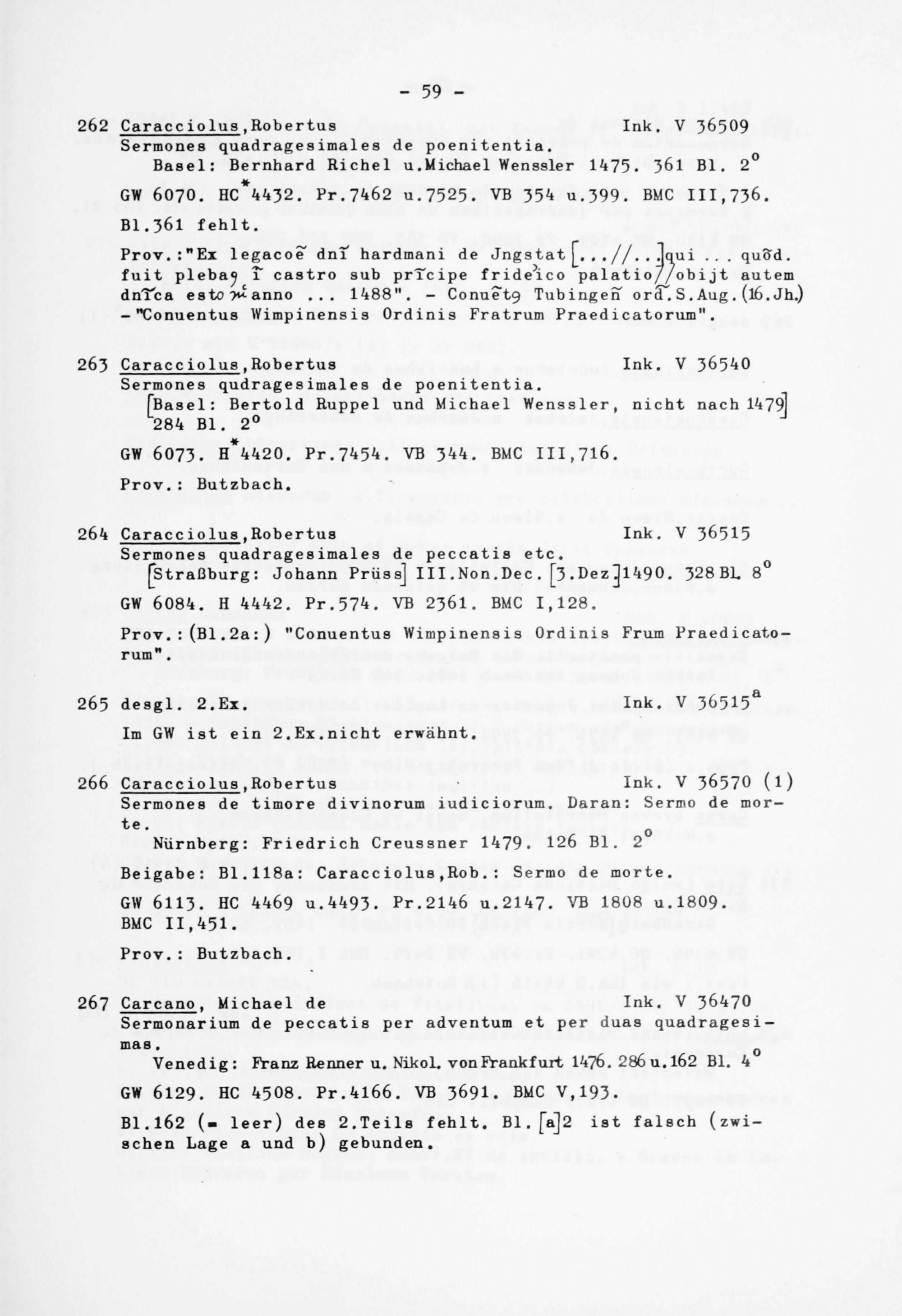 263 Caracciolus ,Robertua Ink. V 36540 Sermones qudragesimales de poenitentia.