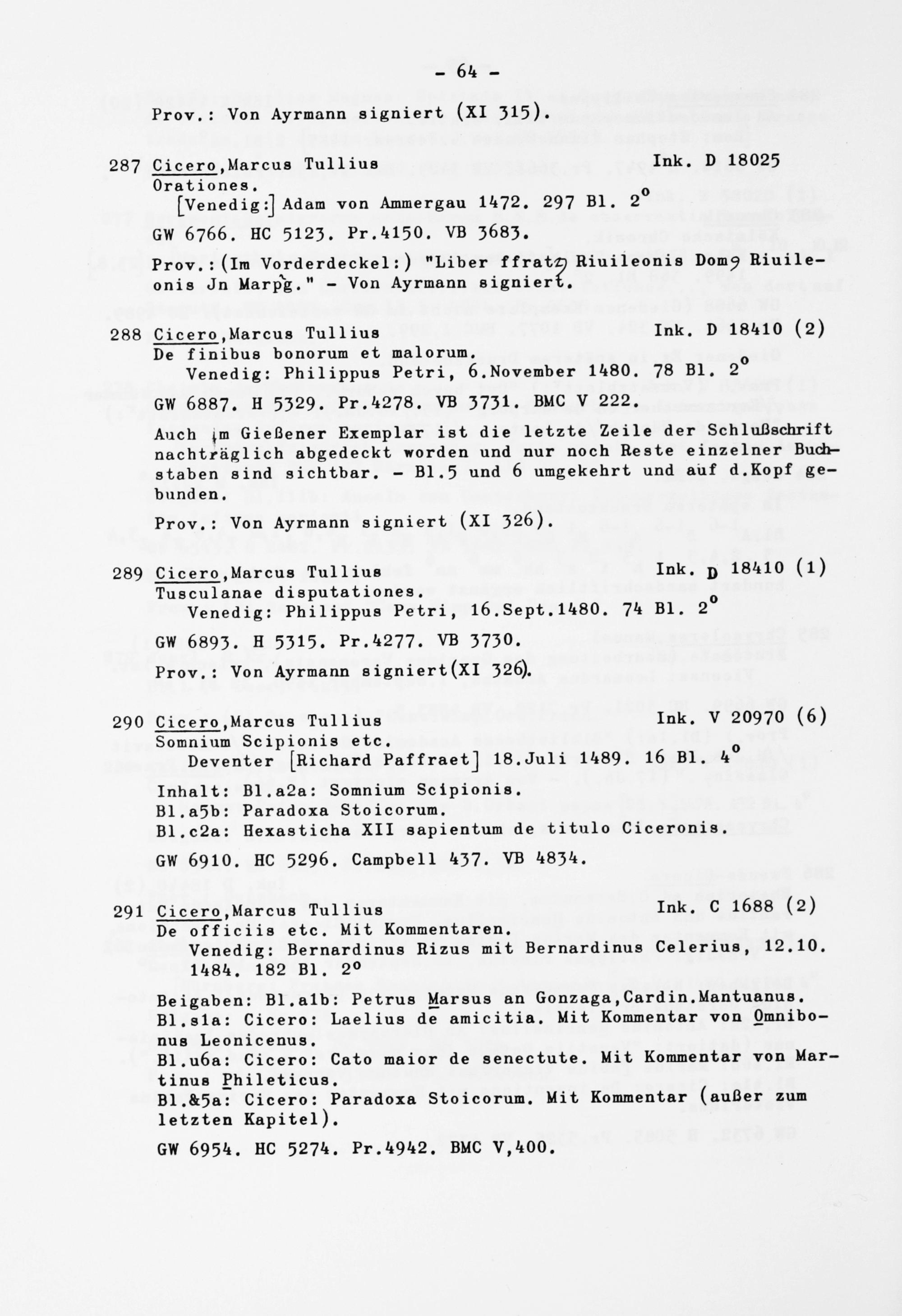 287 Cicero .Marcus Tullius Ink. D 18025