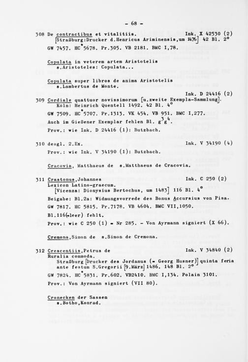 310 desgl. 2.Ex. Ink. V 34190 (4) Prov.: wie Ink. V 34190 (l): Butzbach.