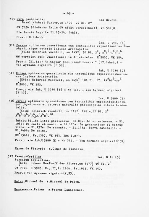 Prov.: wie Ink.U3980 (l) - Nr 314. - Von Ayrmann s igniert (F 39). Cynus de Pistorio s.Cinus de Pistorio.