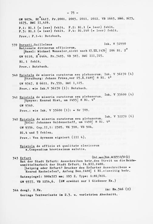 340 Epistola de miseria curatorum seu plebanorum. Ink. V 36170 (4) [Straßburg: Johann Prüss.vor 25. X.1489] 8 Bl . 4°