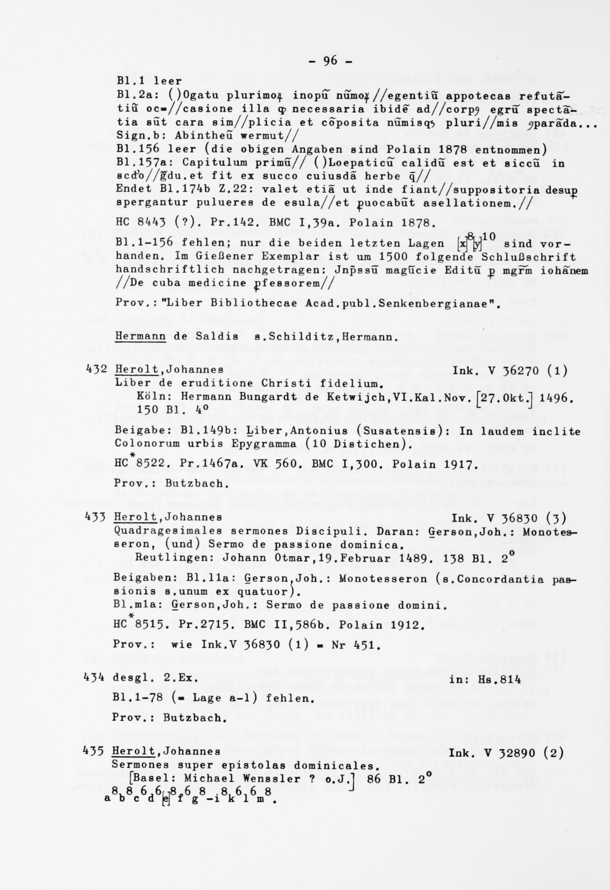 432 HeroU,Johannes Ink. V 3627O (l) Liber de eruditione Christi fidelium.