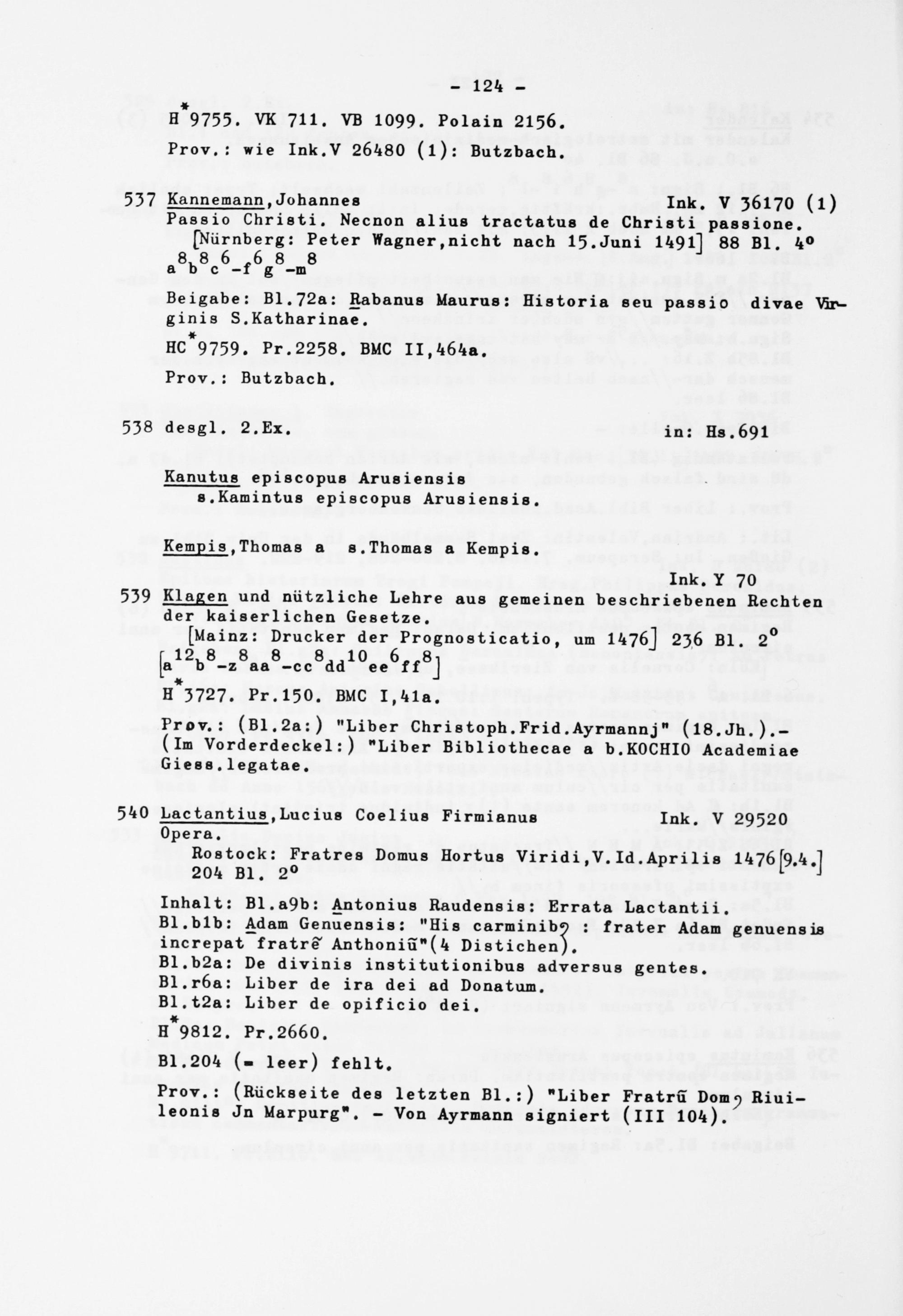 537 Kannemann ,Johannes Ink. V 36170 (l) Passio Christi. Necnon alius tractatus de Christi pasaione.