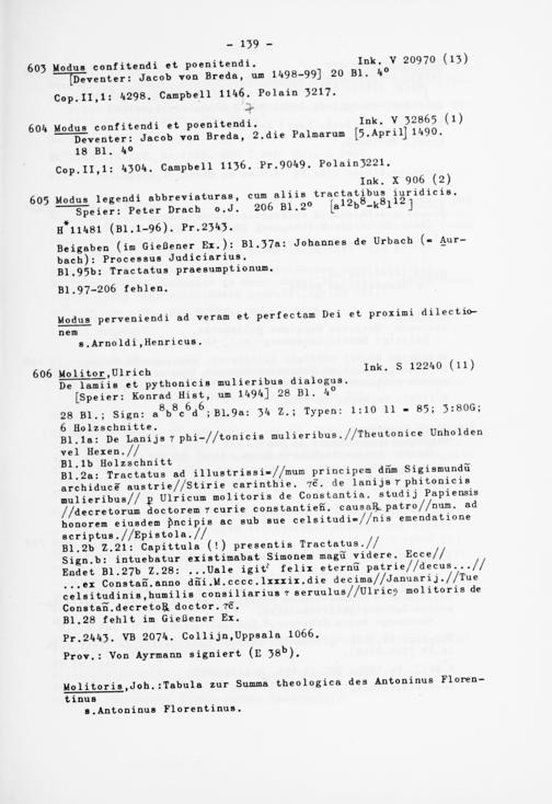 606 Molitor ,Dlrich Ink. S 12240 (ll) De lamiis et pythonicis mulieribus dialogus.
