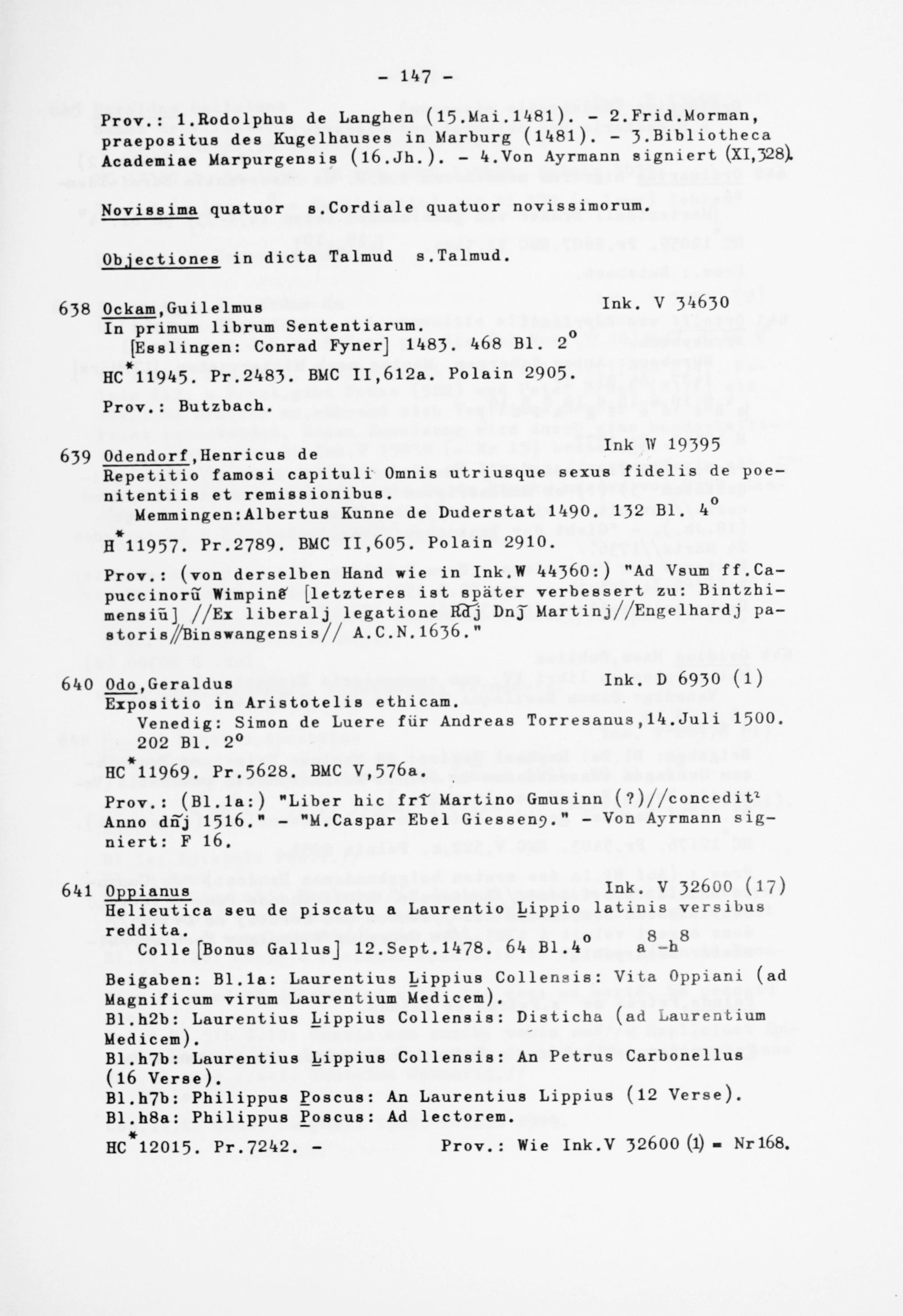 Prov.: l.Rodolphus de Langhen (15. Mai. 1481). - 2.Frid.Morman, praepositus des Kugelhauses in Marburg (1481). - 3 .Bib 1 iothe ca Academiae Marpurgensis (l6.Jh.). - 4. Von Ayrmann signiert (XI.328).