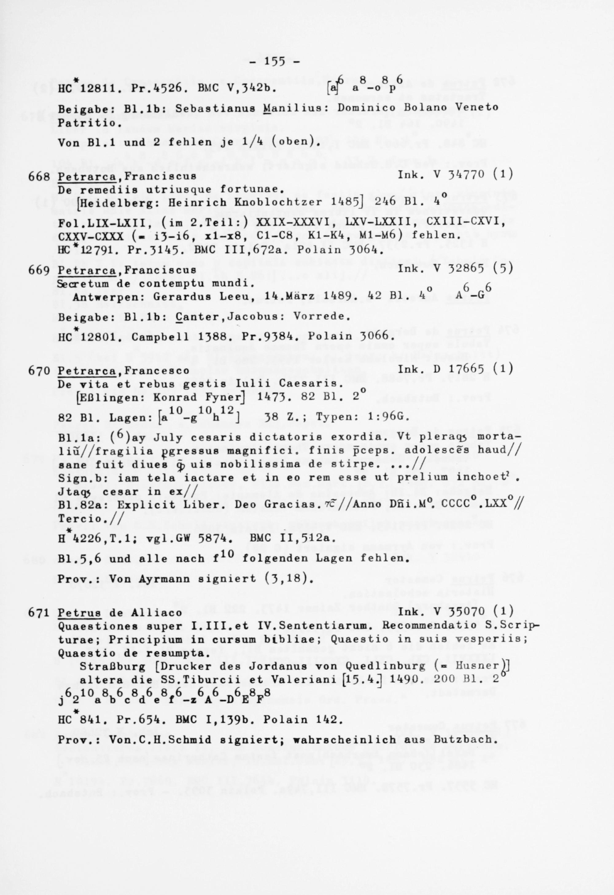670 Petrarca ,Franceaco Ink. D I7665 (l) De vita et rebus gestis Iulii Caesaris.