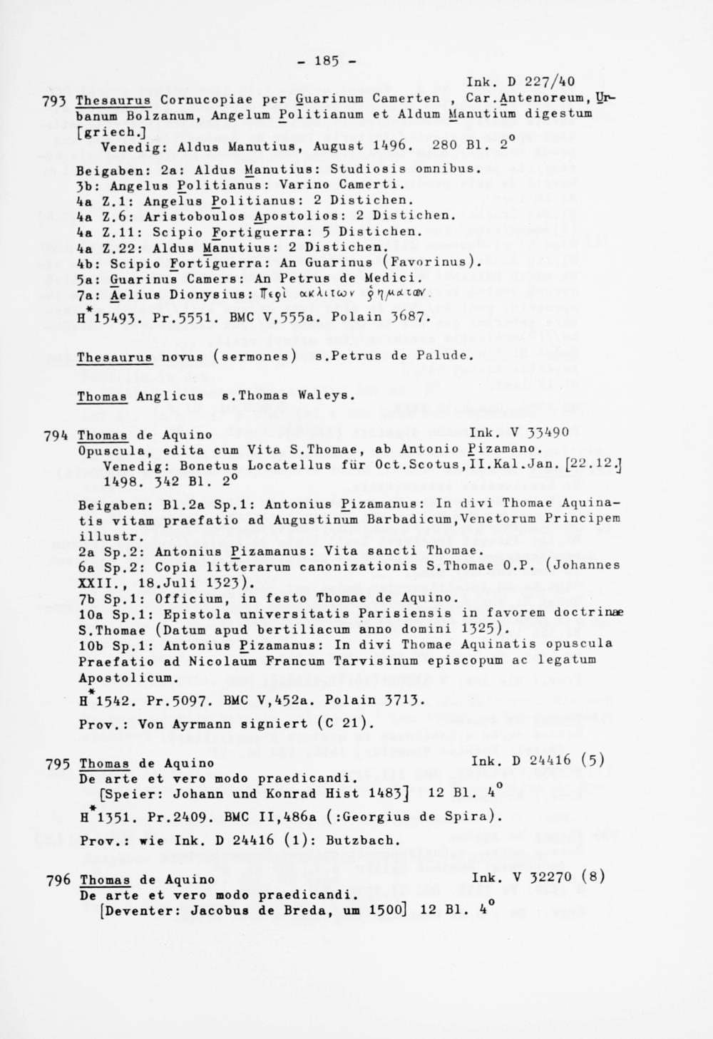 793 Thesaurus Cornucopiae per Guarinum Camerten , Car . Antenoreum , Ur- banum Bolzanum, Angelum Politianum et Aldum Manutium digestum [griech.]