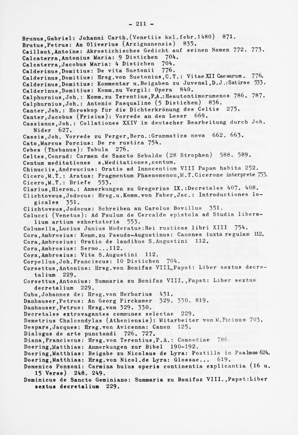Brunus.Gabriel: Johanni Carth.(Venetiis ka 1 .febr. 1 480) 871. Brutus,Petrus: An Oliverius (Arzignanensis) 835.