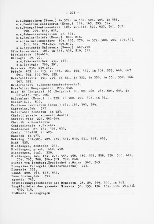 s.a.Sapientia Salomonis (Komm.) 447-450. Bibelkonkordanz 306. in 433. '»3'*. 510. 511. Bibelzitate 616-618. Biologie 19. 20.