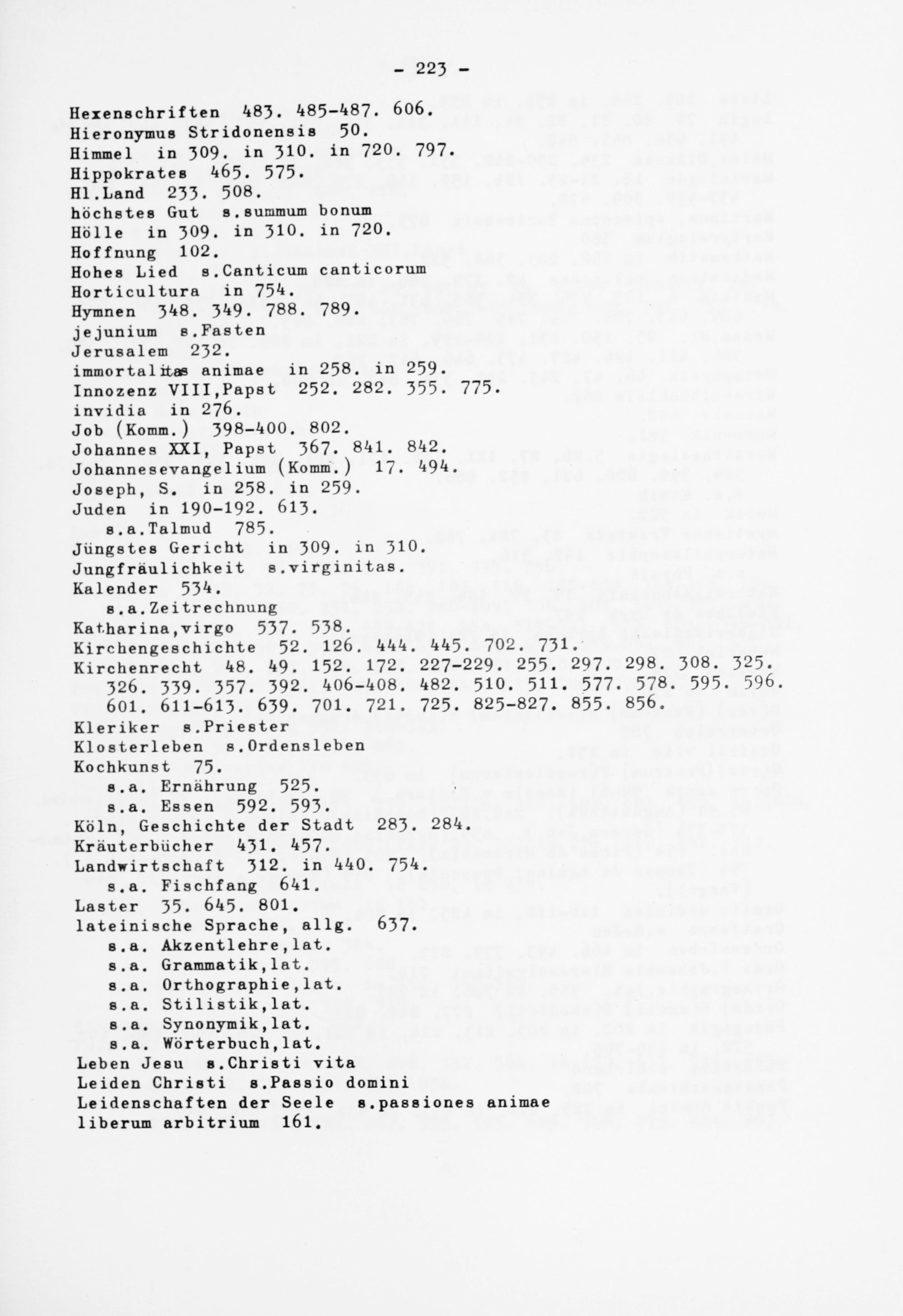 Hohes Lied s.Canticum canticorum Horticultura in 754. Hymnen 348. 349. 788. 789. jejunium s.Fasten Jerusalem 232.