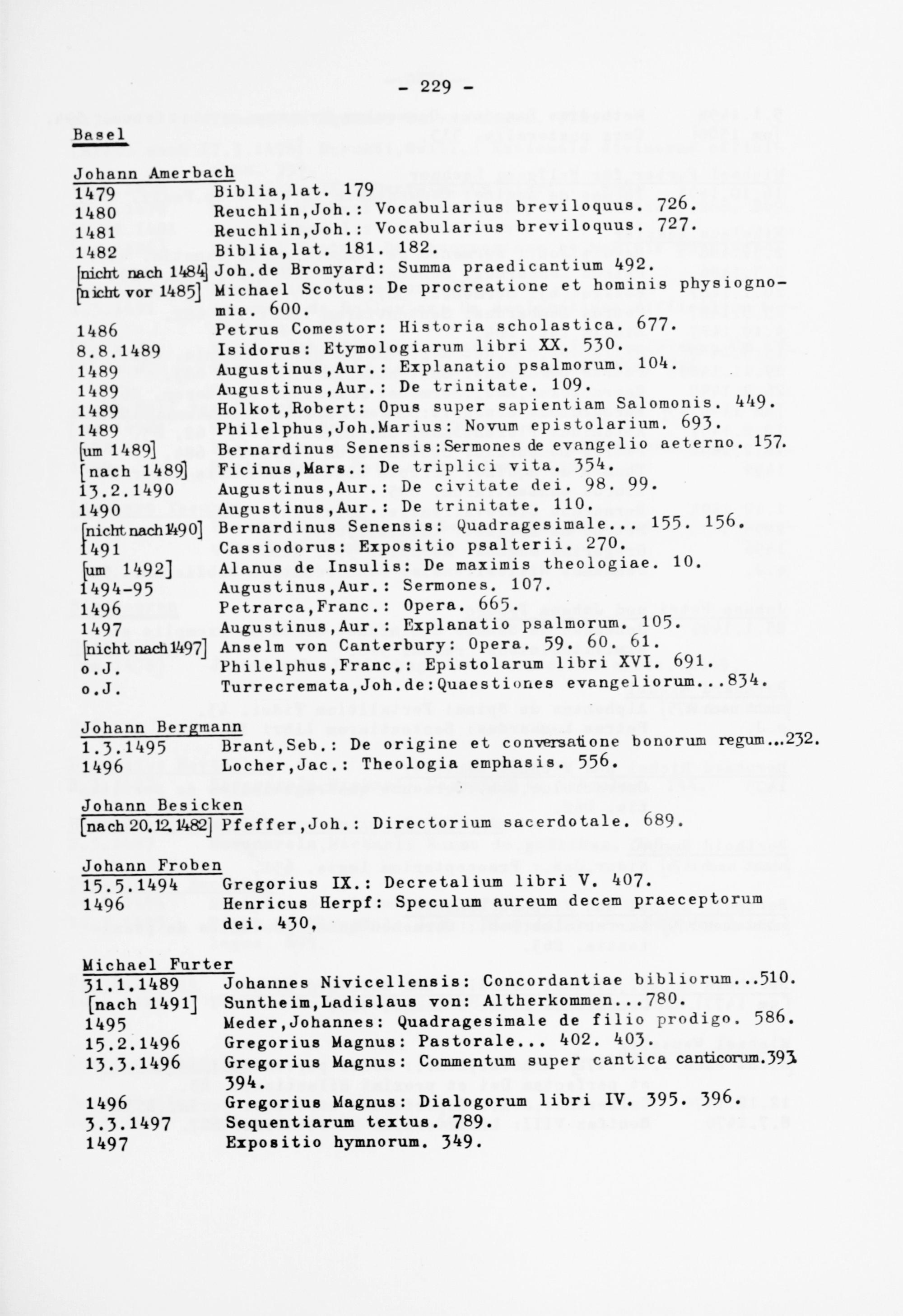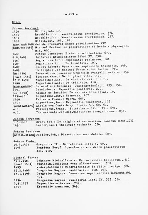 1497 Augustinus,Aur.: Explanatio psalmorum. 105. [nicht nach 1497] Anselm von Canterbury: Opera. 59. 60. 61. o.J. Phile 1 phus,Franc,: Epistolarum libri XVI. 691■ o.J. Turrecremata,Joh.de:Quaestiones evangeliorum... 834.