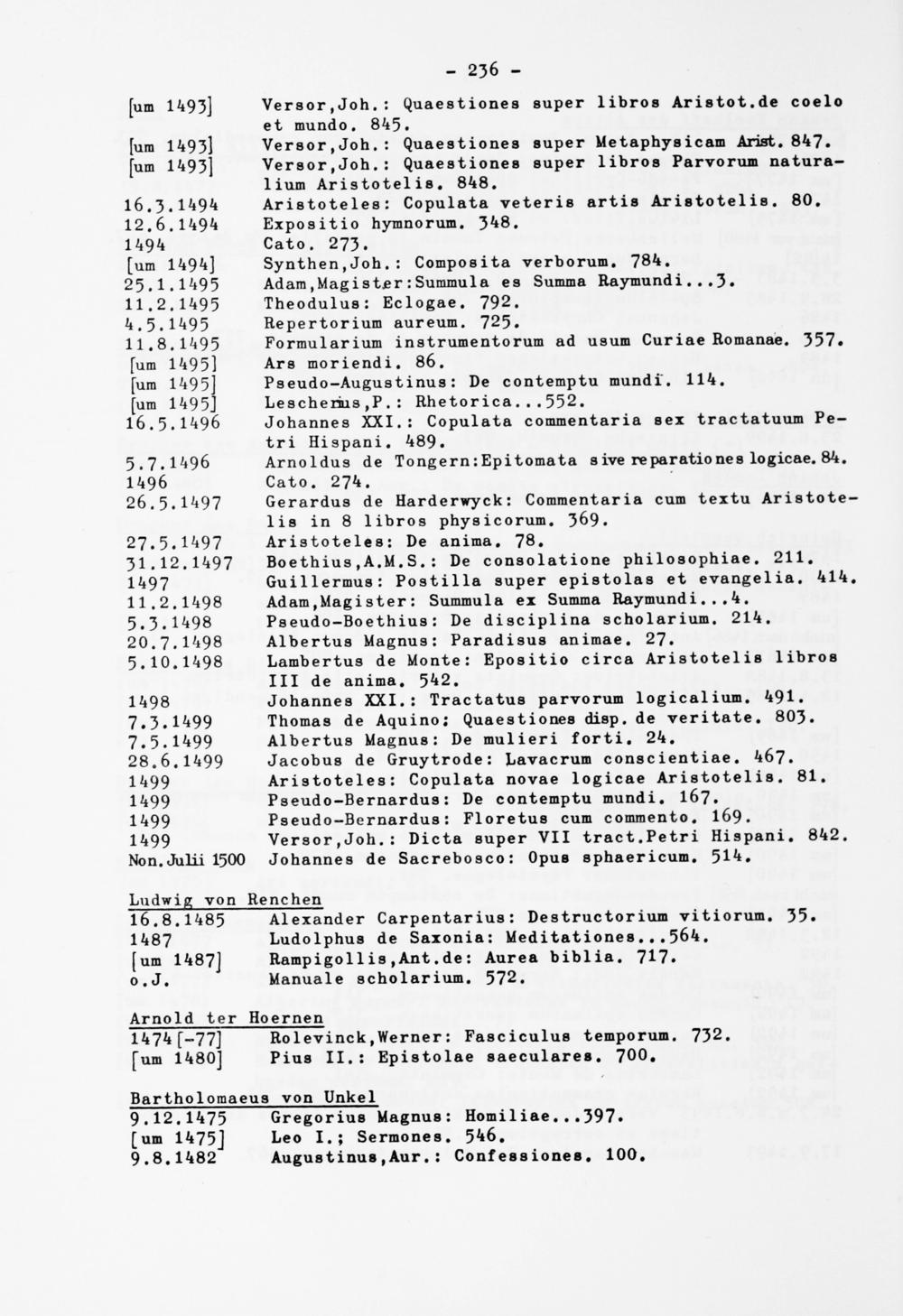 1499 Aristoteles: Copulata novae logicae Ari8totelia. 81. 1499 Pseudo-Bernardua: De contemptu mundi. 1 67.