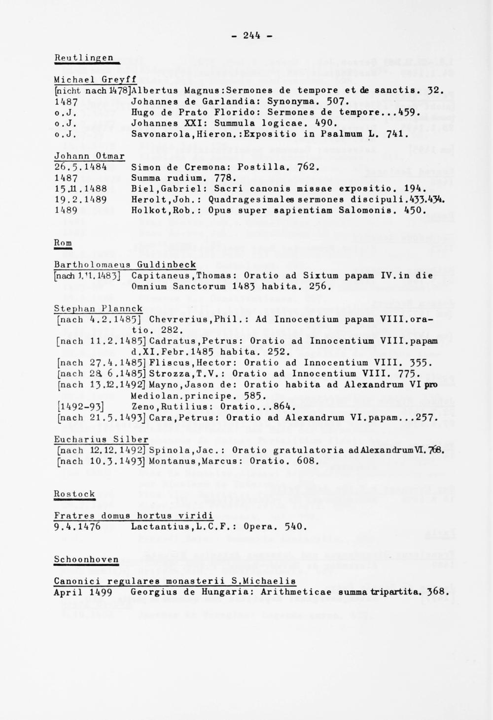d.XI.Febr. 1485 habita. 252. [nach 27 .4.1485] Fliscus,Hector: Oratio ad Innocentium VIII. 355. [nach 2a 6 .1485] Strozza.T.V.: Oratio ad Innocentium VIII. 775. [nach 13 .12 .1492] Mayno , Jason de: Oratio habita ad Alexandrum VI pro