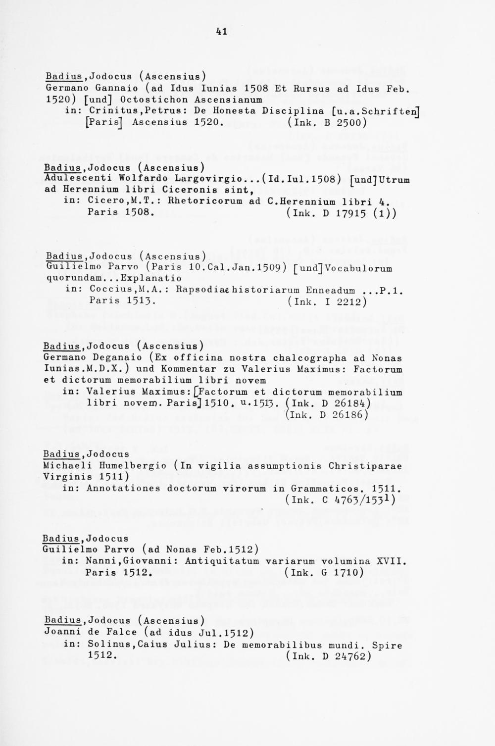 in: Crinitus.Petrus: De Honesta Disciplina [u.a.Sehriften] [Paris] Ascensius 1520. (Ink. B 2500)