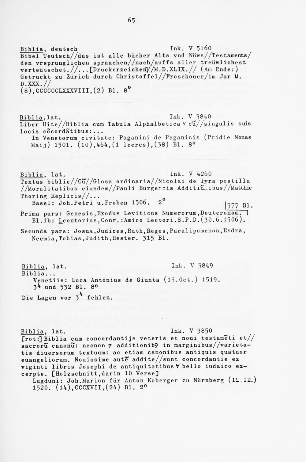 L"rot :3 Biblia cum concordant i j s veteris et noui testam'eti et// sacroru canonu: neenon 7 additionib9 in marginibus//varieta- tis diuersorum textuum: ac etiam canonibus antiquis quatuor euangeliorum. Nouissime aute addite//sunt concordantie ex viginti libris Josephi de antiquitatibus V beilo iudaico ei- cerpte. ["Holzschnitt, dar in 10 VerseJ