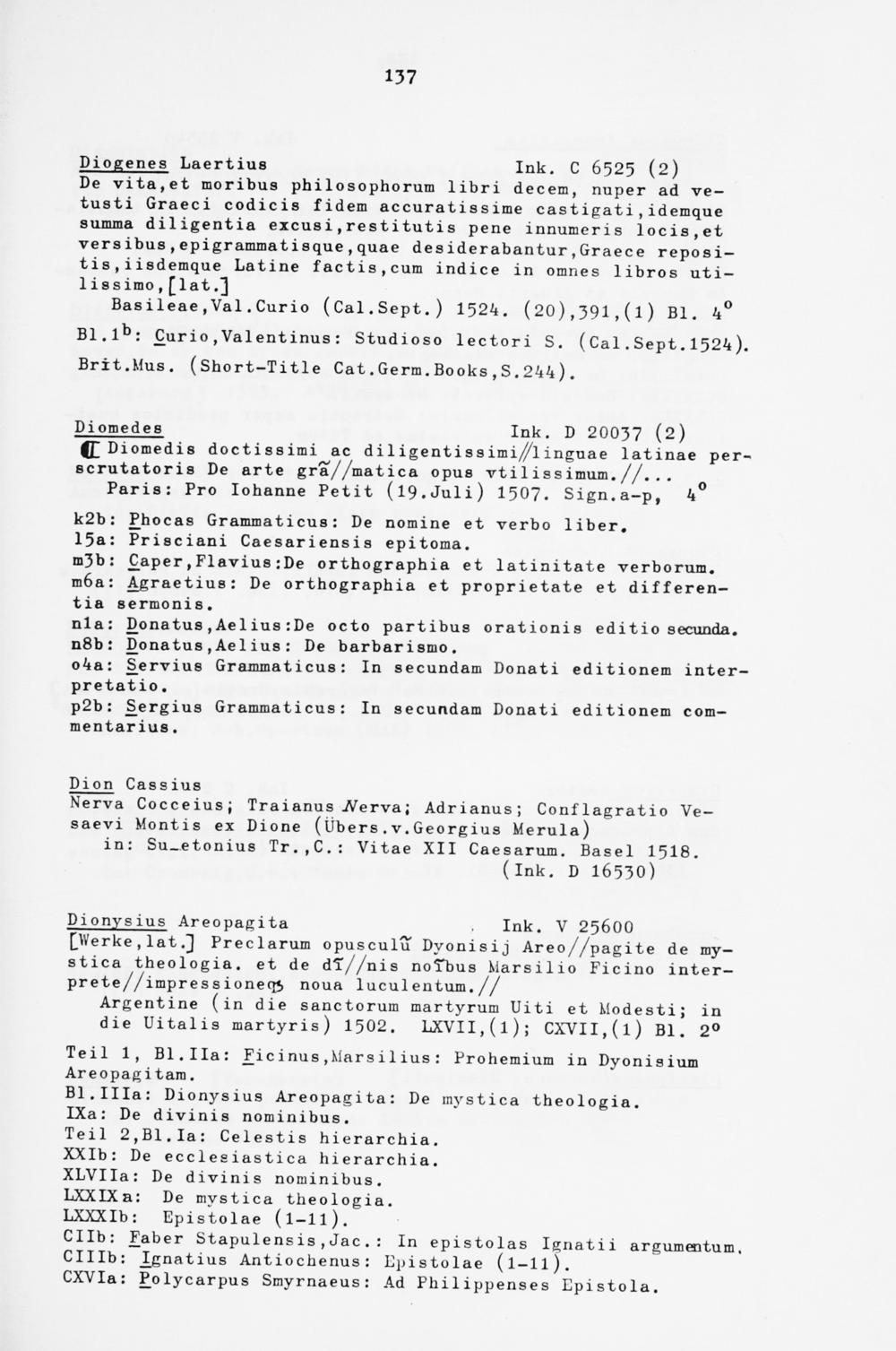 Basileae.Val.Curio (Cal.Sept.) 1524. (20), 391,(l) Bl. 4° Bl.l b : Curio,Valentinus: Studioso lectori S. (Cal.Sept. 1524). Brit.Mus. (Short-Title Cat.Germ.Books,S. 244).